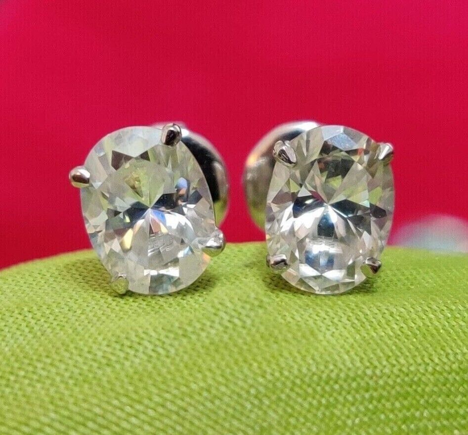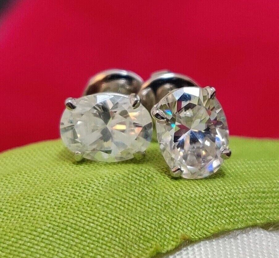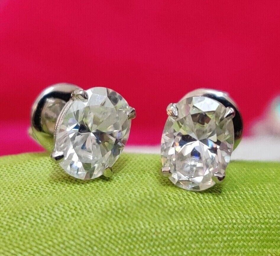 2Ct Oval Cut Lab Created Diamond Solitaire Stud Earrings 14K White Gold Plated