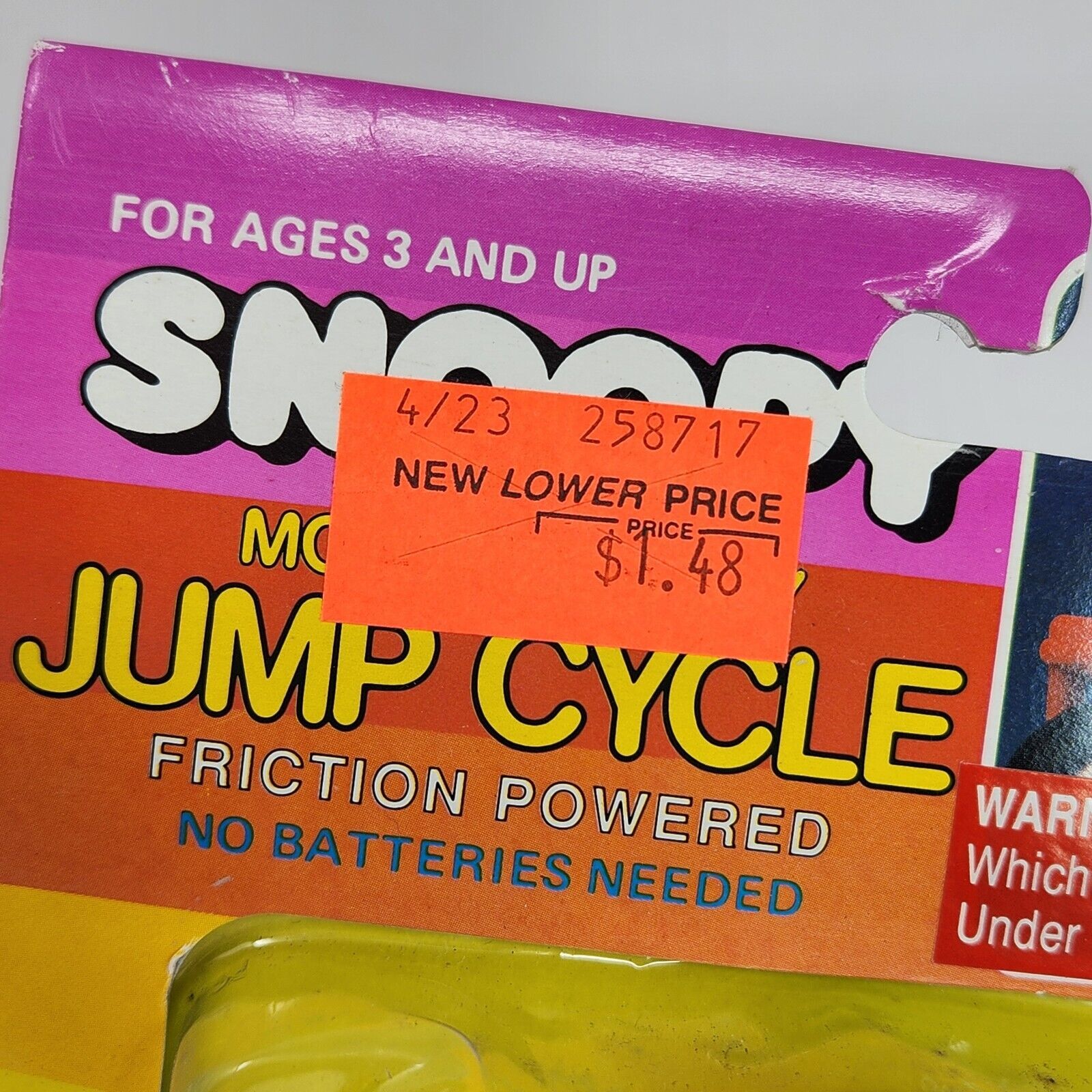 VINTAGE SNOOPY MOTORIZED TOY JUMP CYCLE FRICTION POWERED CHARLIE BROWN NEW NOS