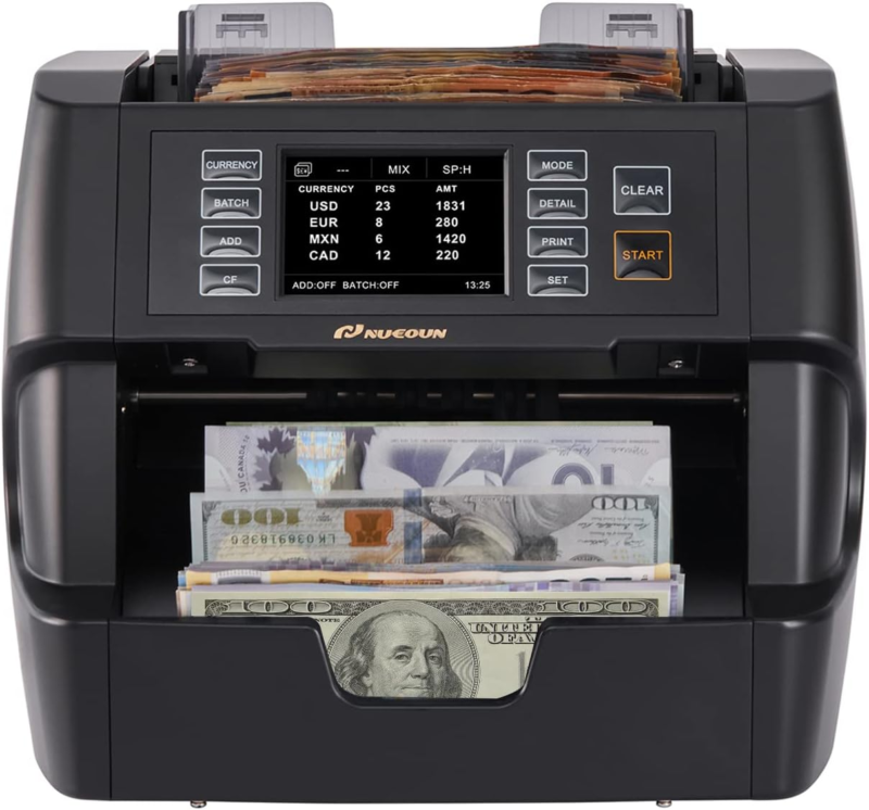 Money Counter Machine Mixed Denomination, Value Counting, CIS/UV/IR/MG/MT Counterfeit Detection, Usd/Euro/Cad/Mxn, Printer Enabled Bill Cash Counter for Business