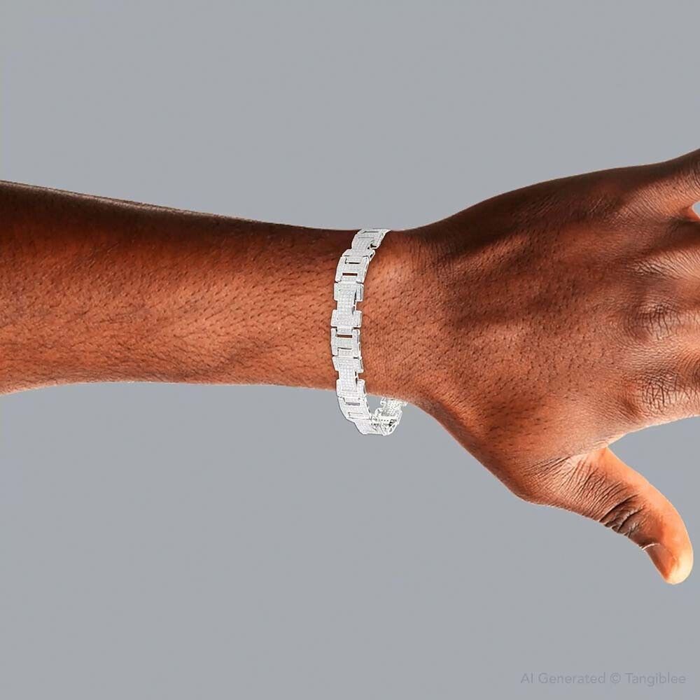 3.50 Ctw Lab Created Diamond 14K White Gold Plated Statement Men's Bracelets 8"