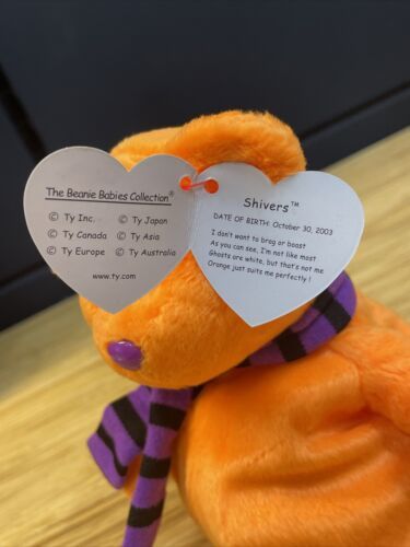 Ty Beanie Baby Shivers Bear Ghost Plush 2004 Halloween Spooky KG JD