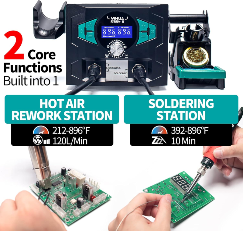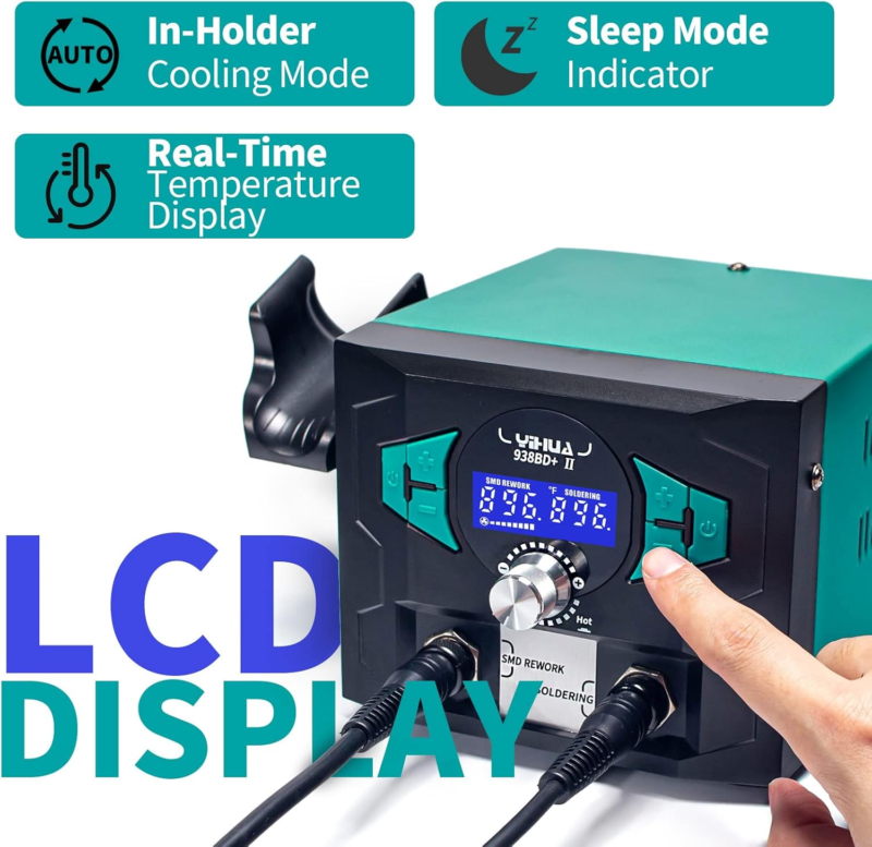 938BD+ II Soldering Iron Station Hot Air Rework with Sleep Mode, °F /°C, Digital