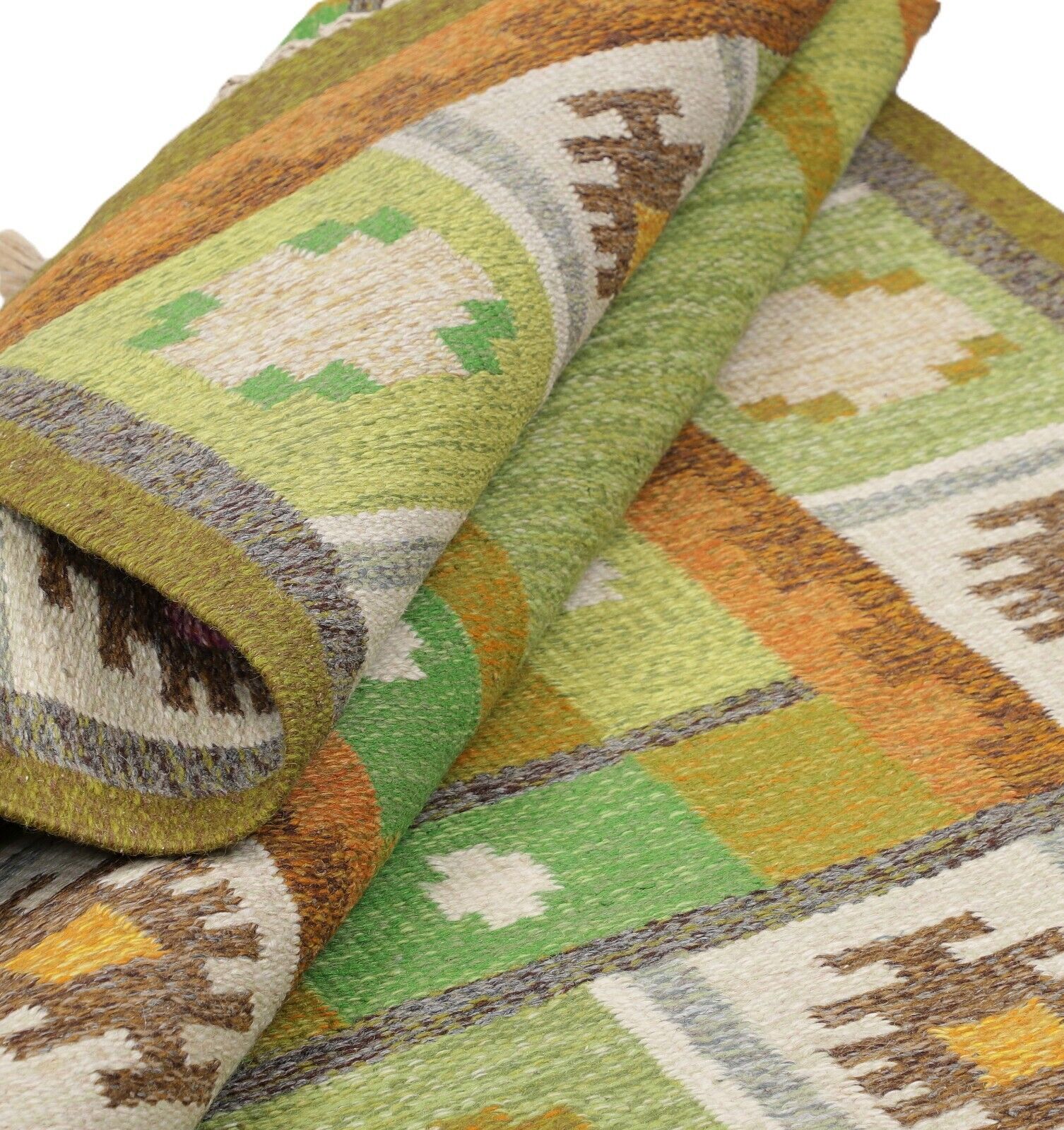 Add a touch of nature to your home with this beautiful handmade area rug. The vibrant green color and floral pattern make it perfect for any room, whether it be the living room, bedroom, or kitchen. The rug is made of a blend of 100% cotton and 100% wool, making it both soft and durable.