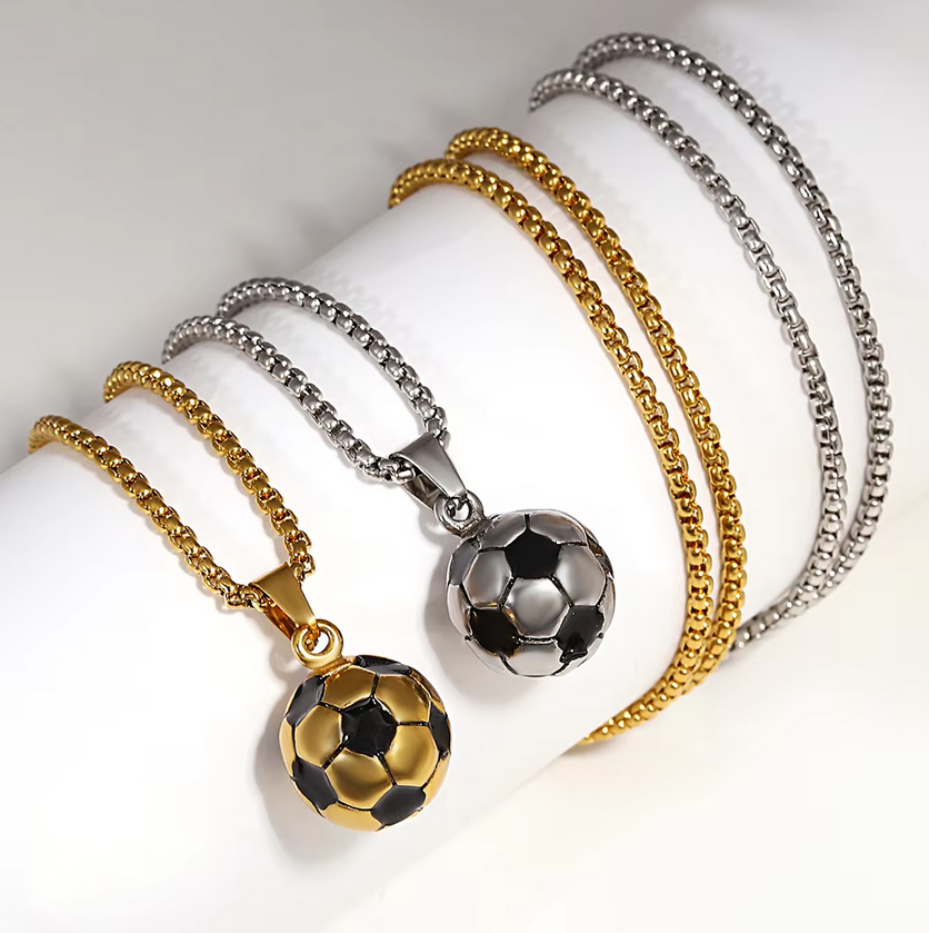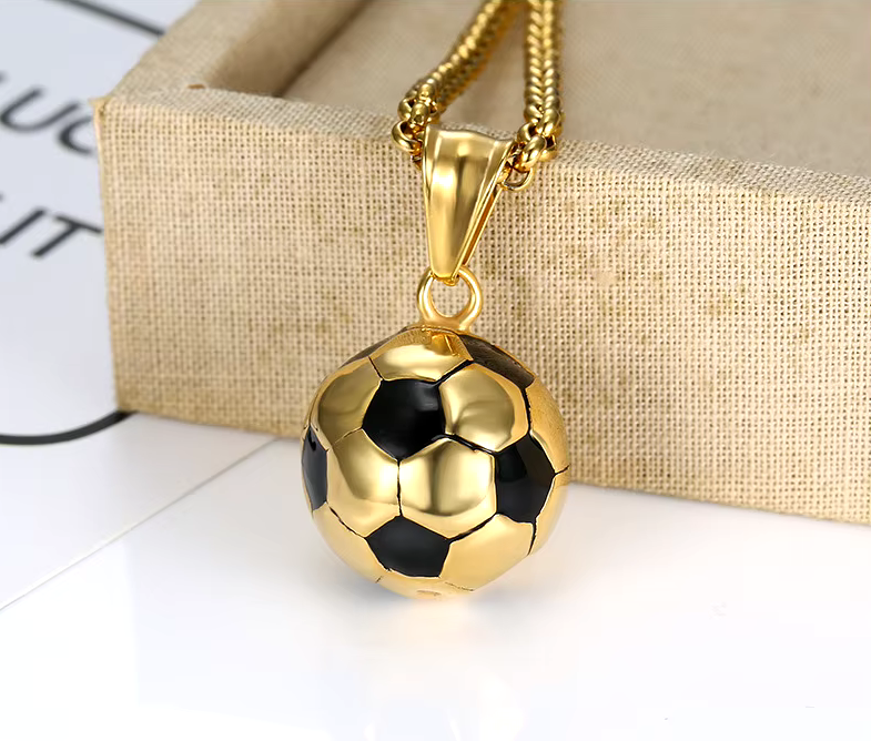 Men's Quality Stainless Steel Solid 3D Football Soccer Titanium Pendant Necklace