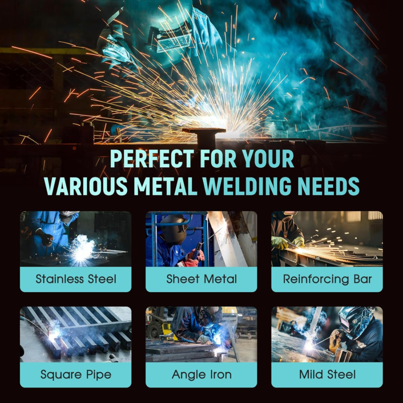 Versatile Efficient for All Your Metal Needs: Our cordless welder supports electrode sizes of 3/32'', 1/8'', and 5/32'', making it ideal for welding carbon steel and other metals. With hot start arc force and anti-stick technology, you'll enjoy increased welding frequency, reduced material damage, and unparalleled energy efficiency.