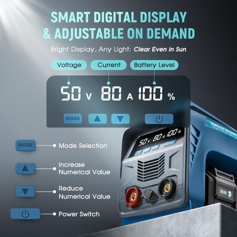 Intelligent Display Adjustable Precision: The intuitive LED display clearly shows welding parameters in any light. Effortlessly adjust current settings on demand for precise control, ensuring perfect welds every time. Plus, enjoy peace of mind with built-in safety features like overheat, over-current, and overload protection, keeping you and your machine safe.