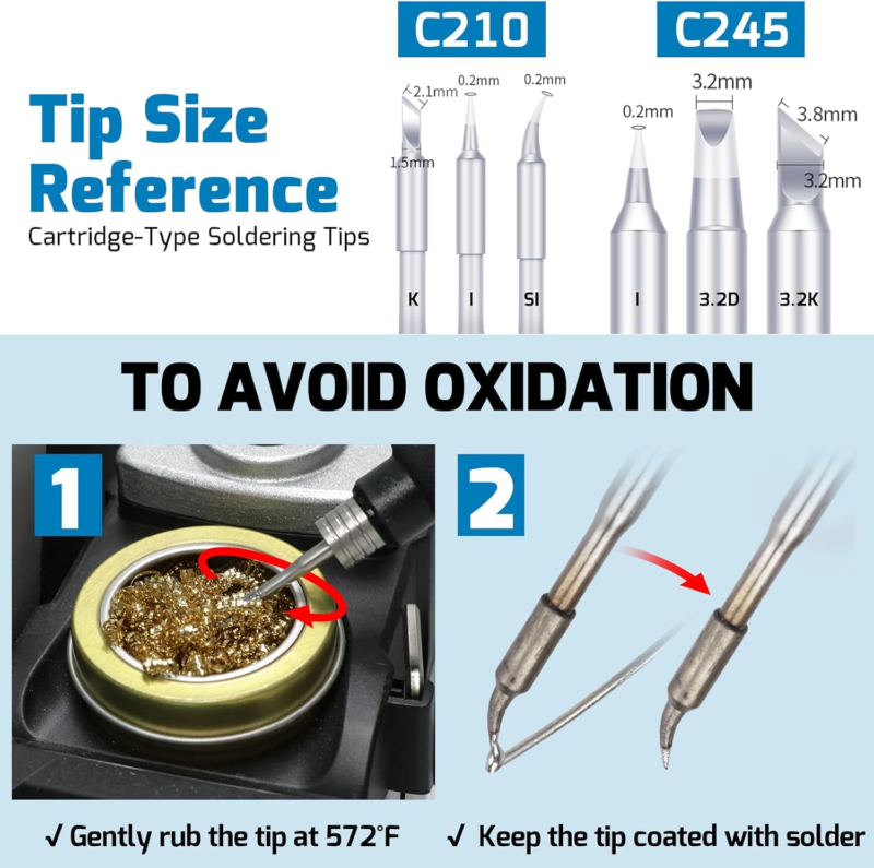 Various tip options: C245-I/3.2K/3.2D, C210-I/K/SI