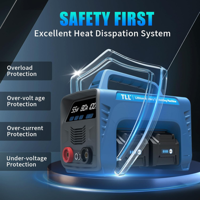 [Professional Safety Protection] - TLL welder features smart protection, including under-voltage protection and intelligent overheat and abnormality detection, ensuring safety and reliability. Its intelligent fan system efficiently prevents overheating. With a high-capacity battery supporting over 1500 charging cycles, it offers long-lasting power.