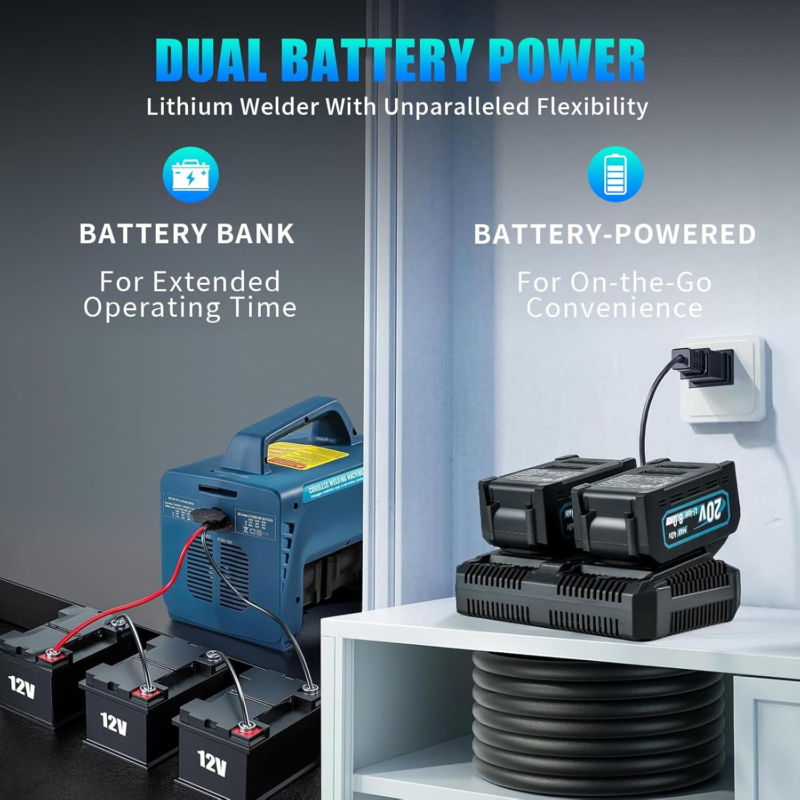 Self-Power Cordless?Battery Welder?Versatile Power Station?Noise Fumes Free?Hot Start Support?Smart Protection