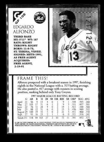 1998 Topps Gallery Exhibitions Proofs 121/125 Edgardo Alfonzo GP105 NY Mets