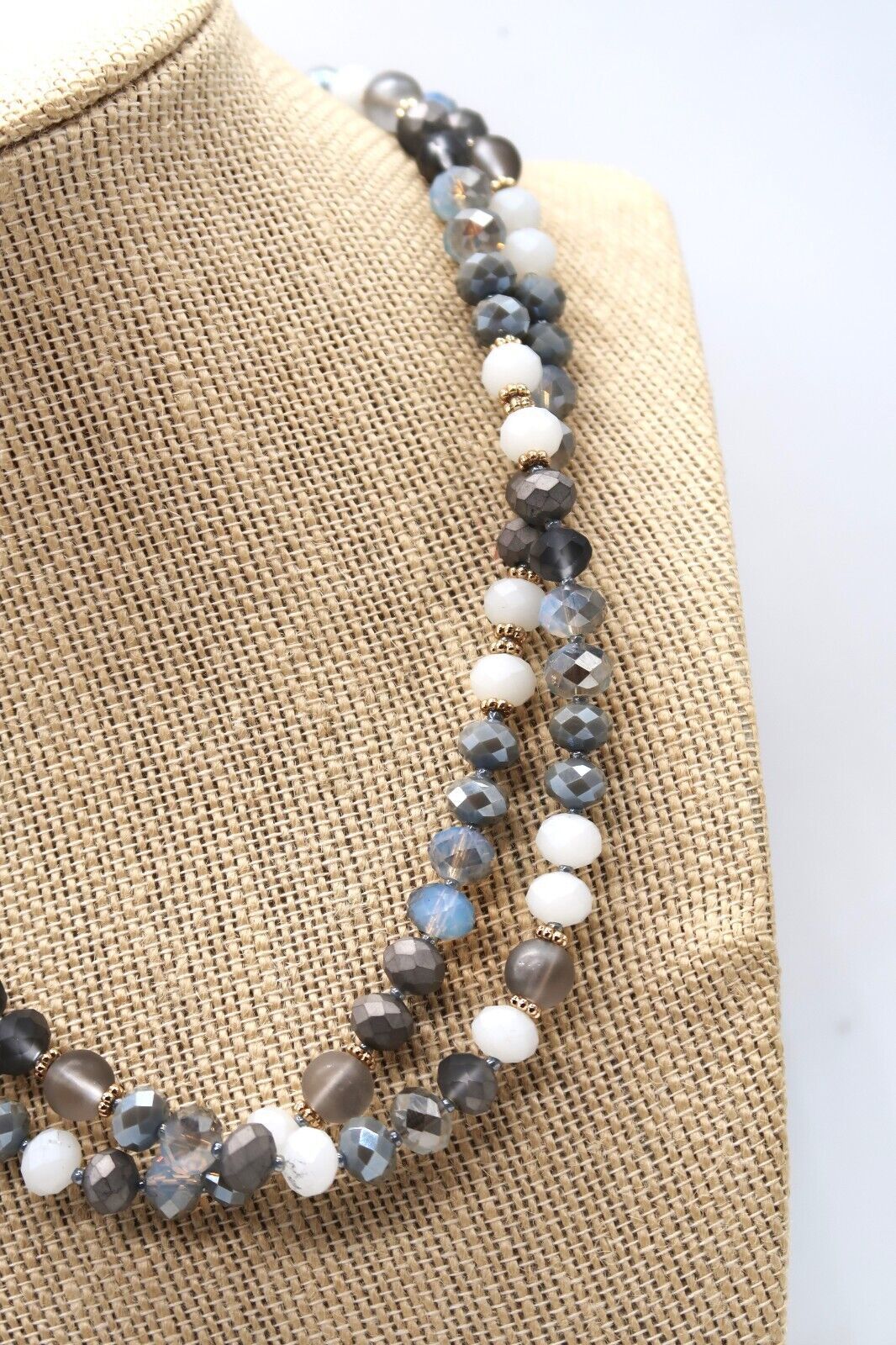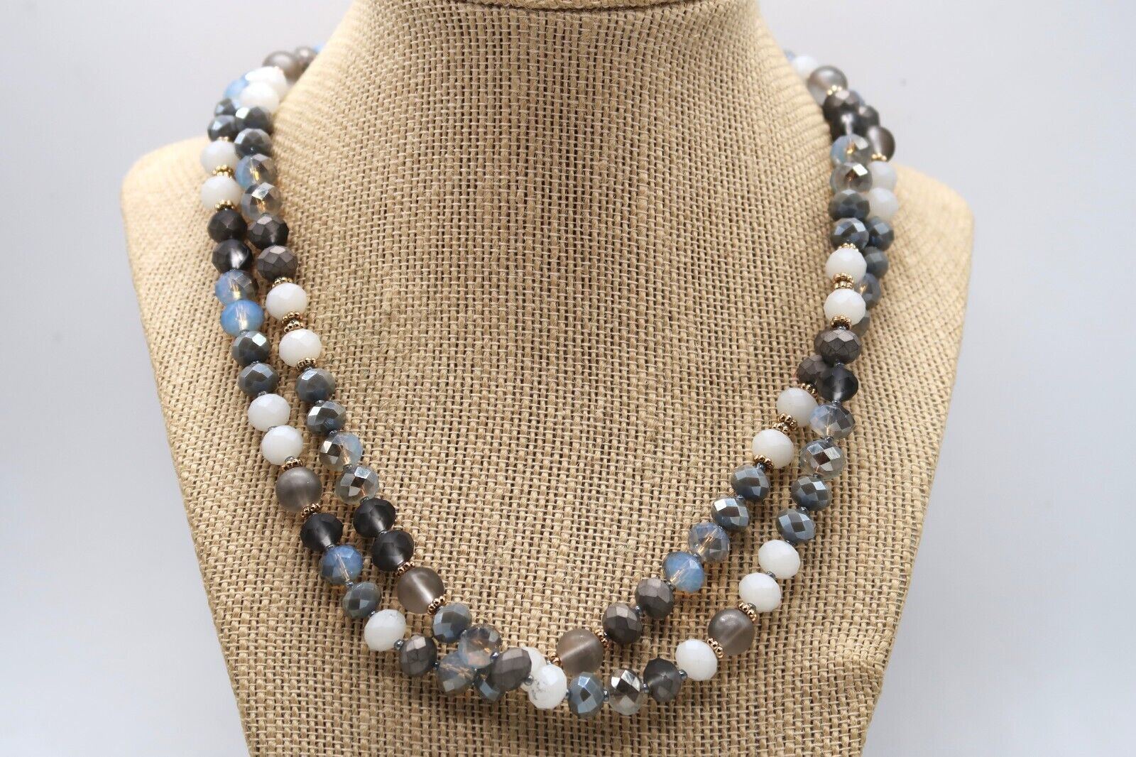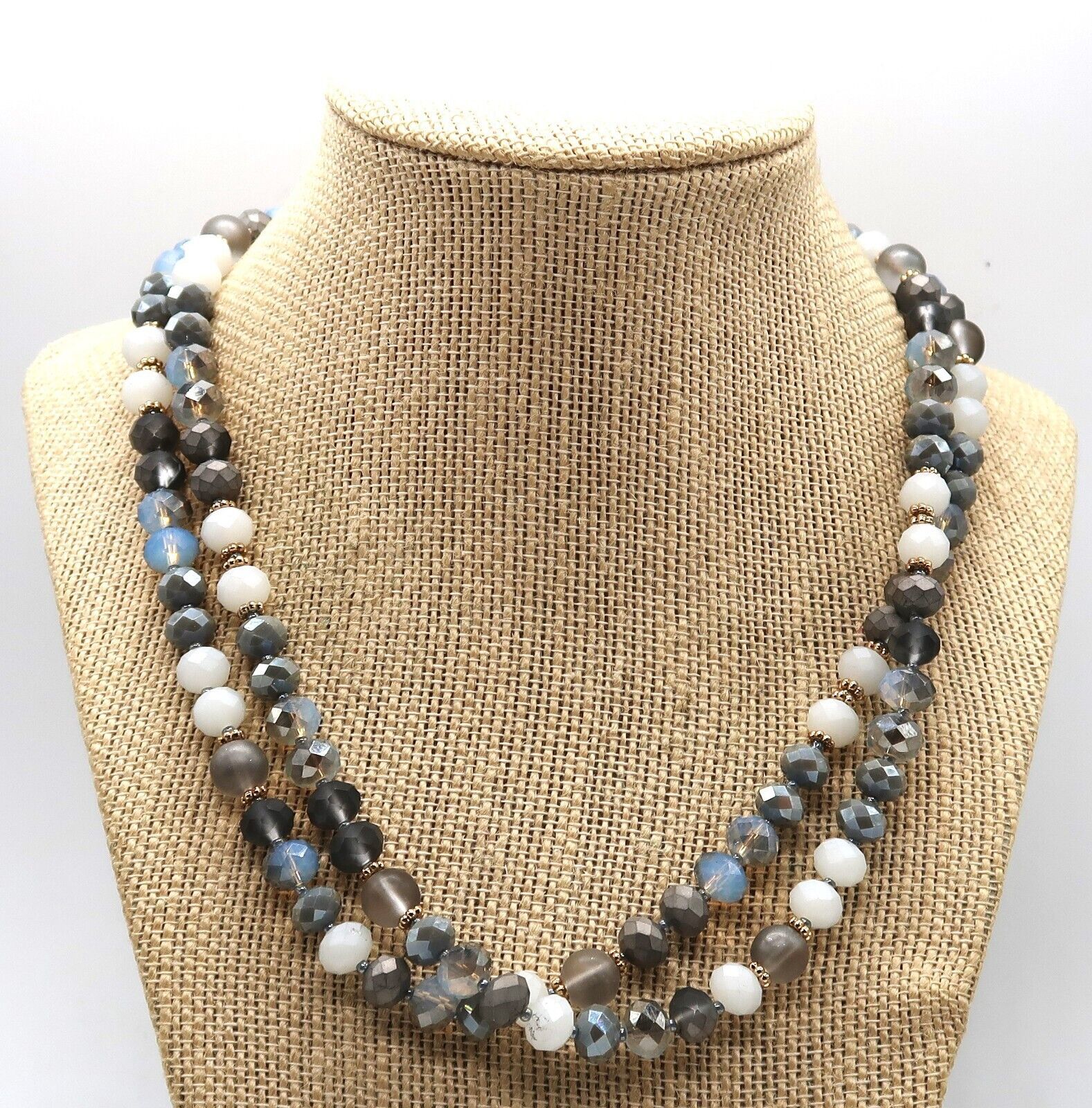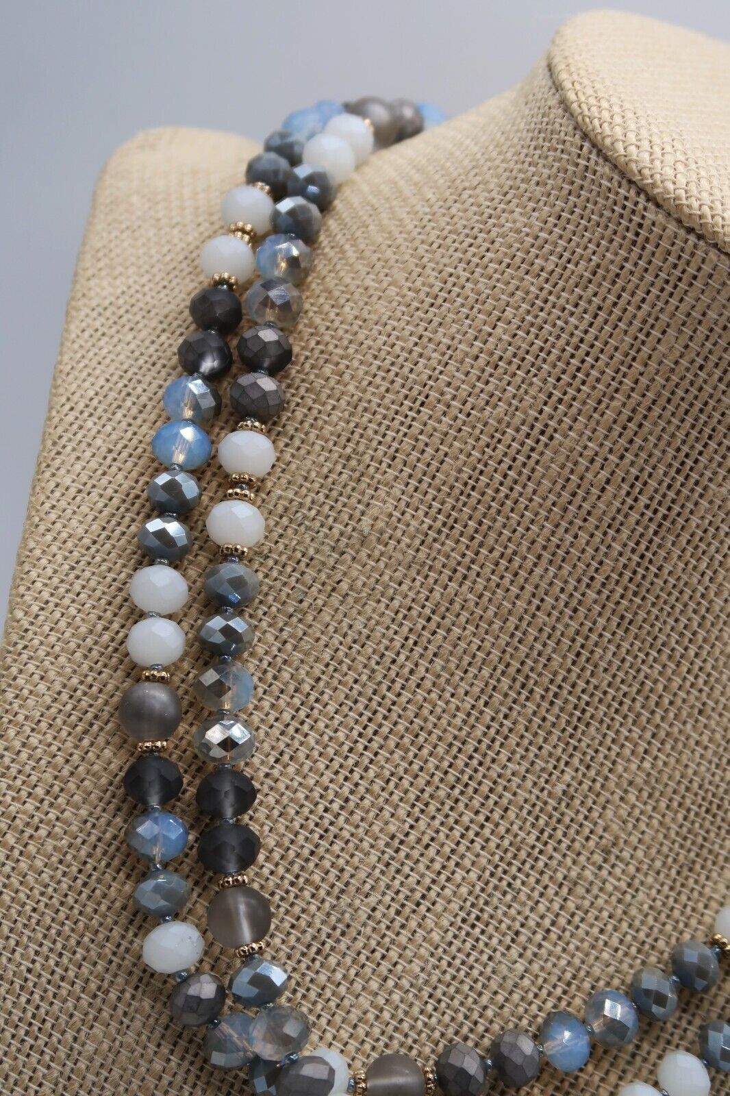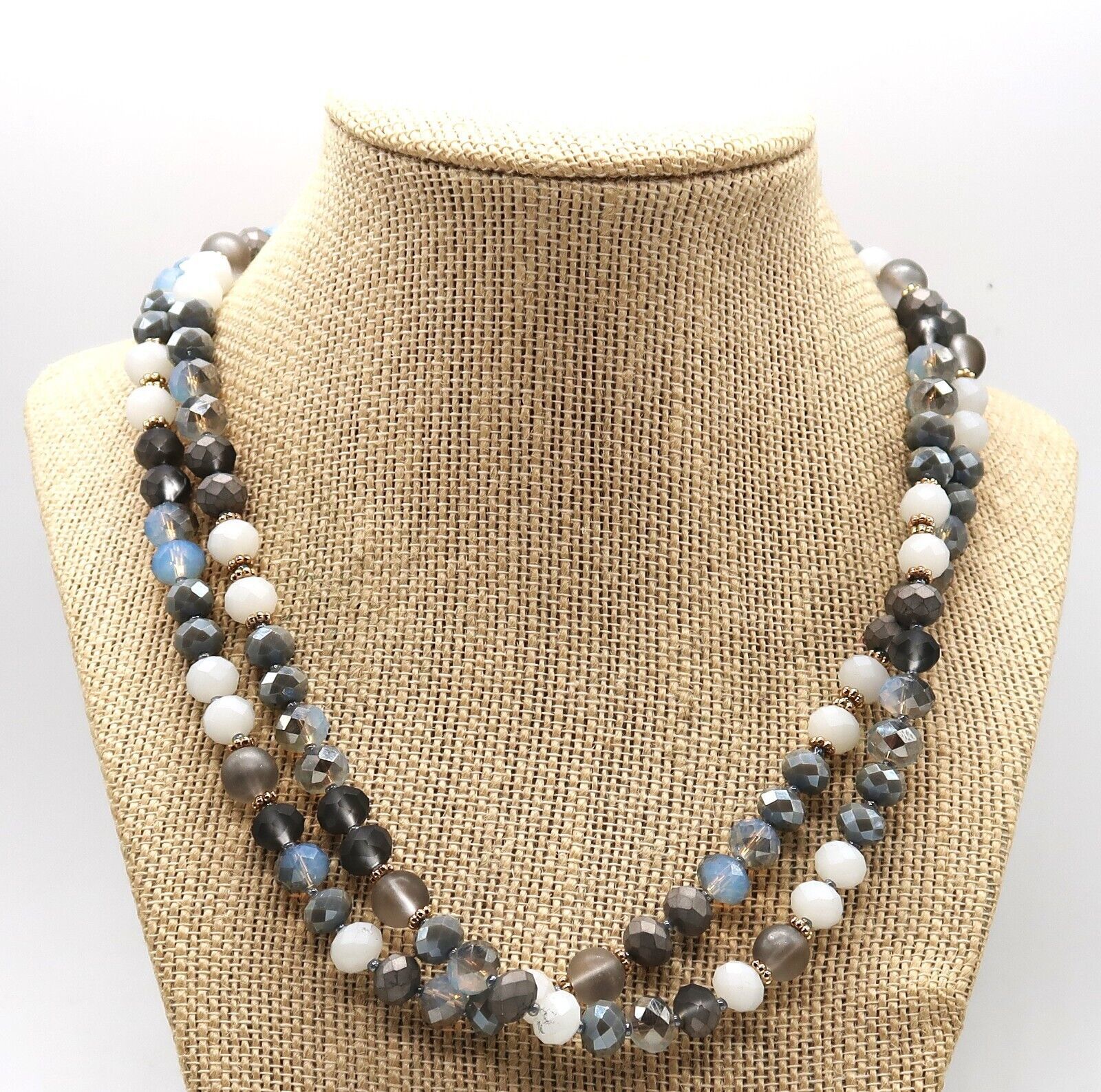 Vtg Two Strand Multi Tonal Princess Length Necklace