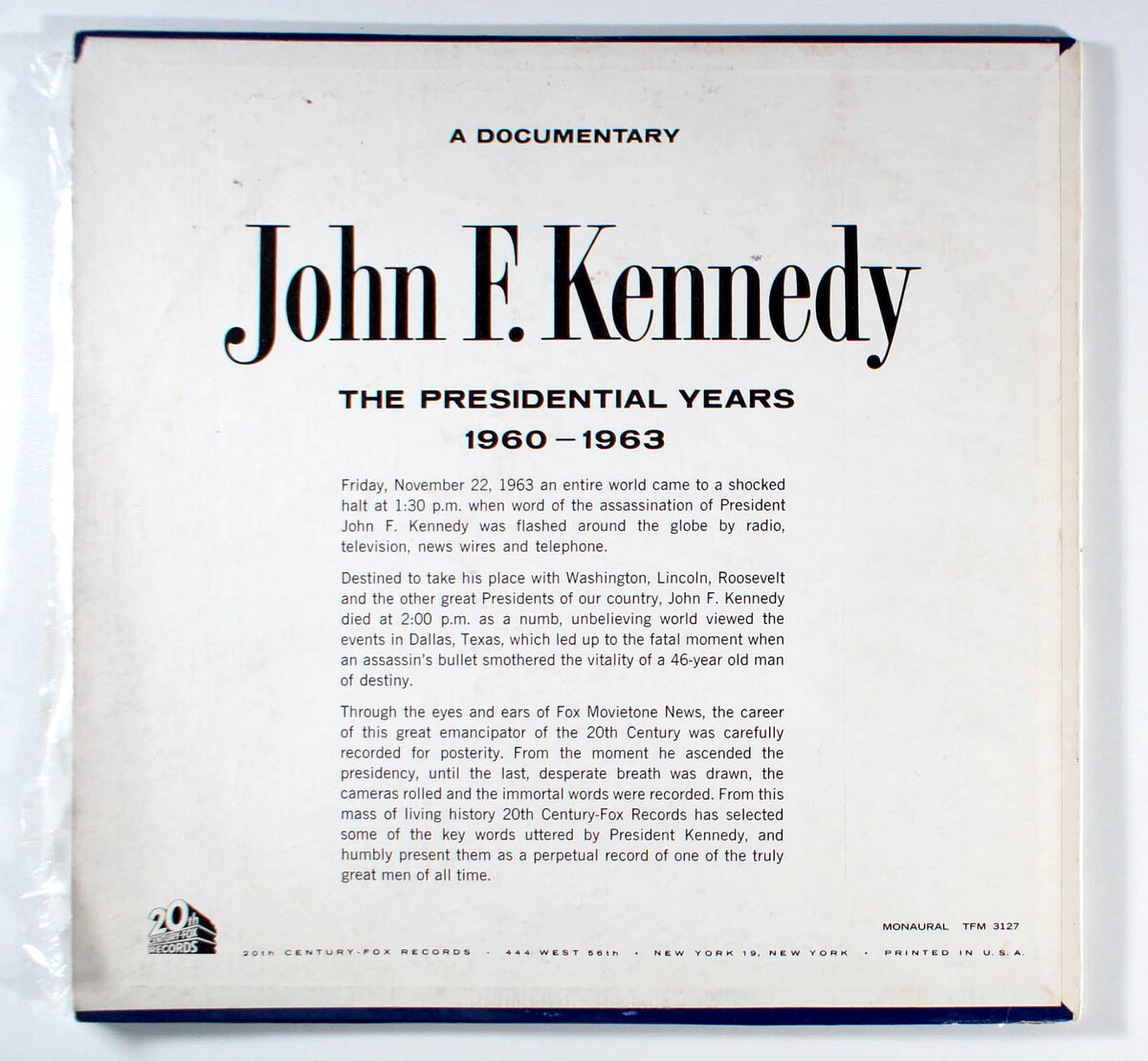 John F. Kennedy: The Presidential Years 1960-1963 (1964) Vinyl LP Fox News