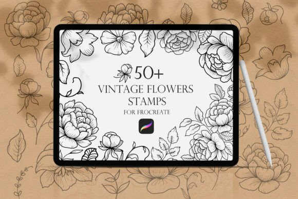 Vintage Flowers Procreate Stamps, Roses brushes procreate, Flower Stamps, Procreate Brushset, Line art floral Procreate, Botanical Stamps,
