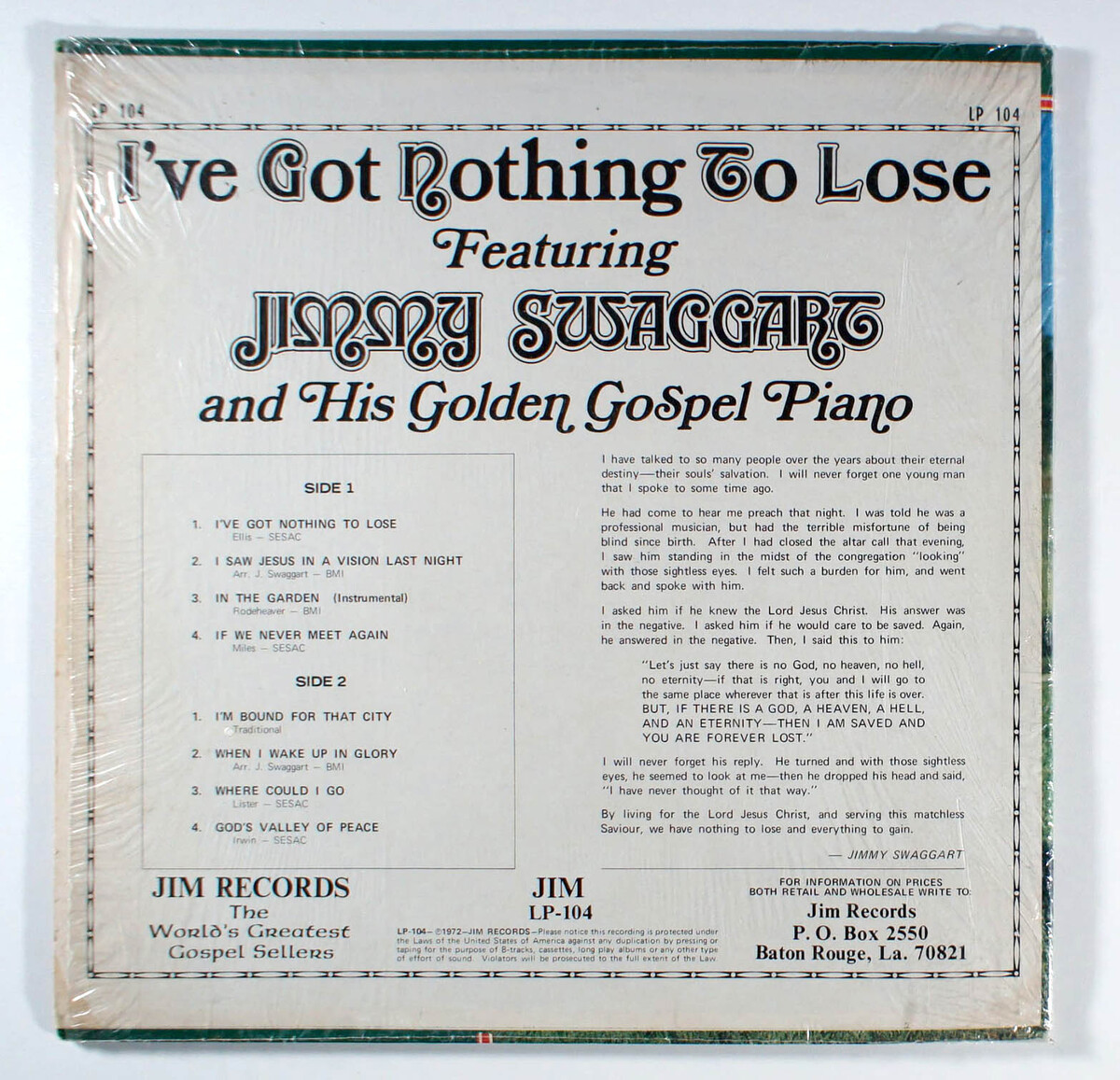 Jimmy Swaggart - I've Got Nothing to Lose (1972) Vinyl LP Christian Gospel