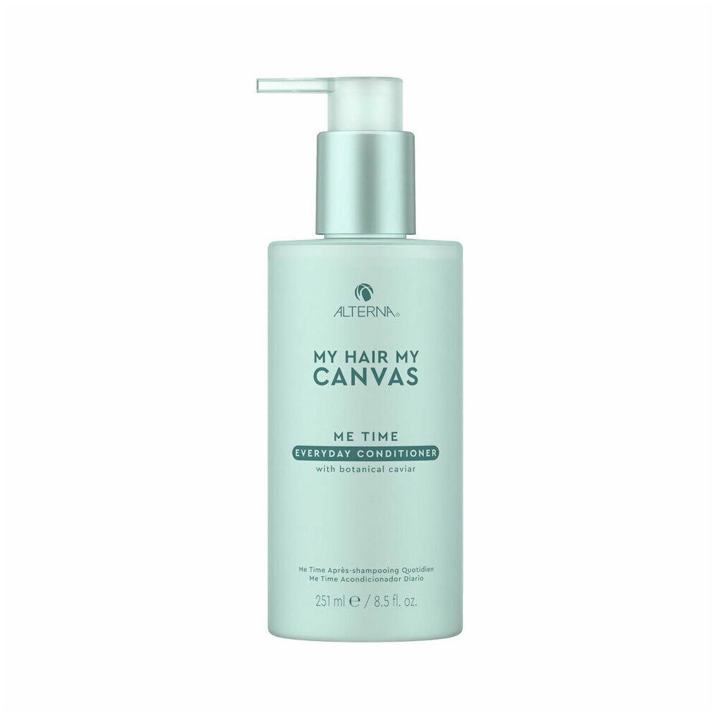 Alterna My Hair My Canvas Me Time Everyday Conditioner 8.5 Ounce 251 Milliliters enhances shine, adds smoothness, and improves manageability. Cleanses and nourishes hair without added weight. Smooths hair to provide softness and improves the overall radiance of hair. Restores and rebalances moisture. Leaves hair supple with improved manageability. Safe for color-treated hair. Use it after cleansing, remove excess water, and massage throughout wet hair. Rinse.