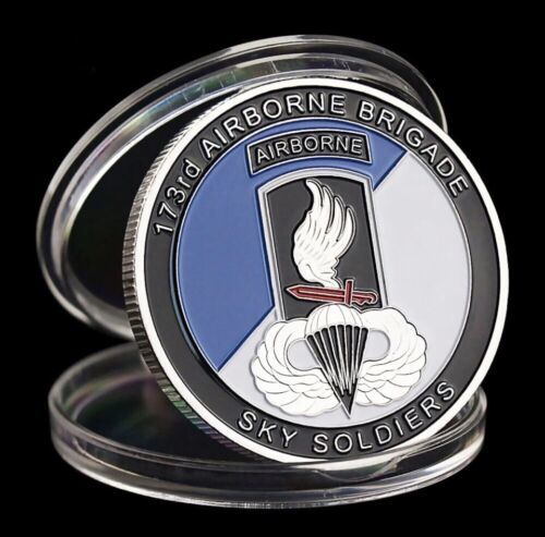 Featuring the iconic 173rd Airborne Brigade emblem and a paratrooper in full gear, this coin pays tribute to the bravery and dedication of the soldiers who serve in this elite unit. Made of durable materials and designed to last a lifetime, this challenge coin is a true piece of history. Add it to your collection today!