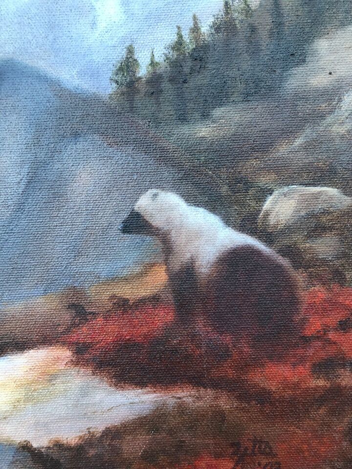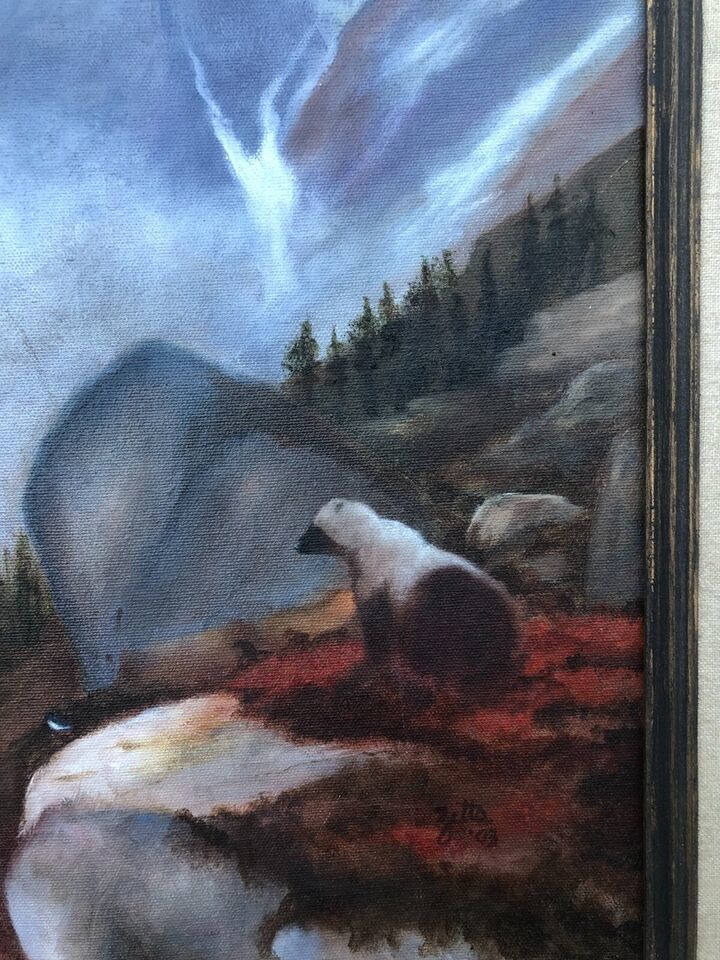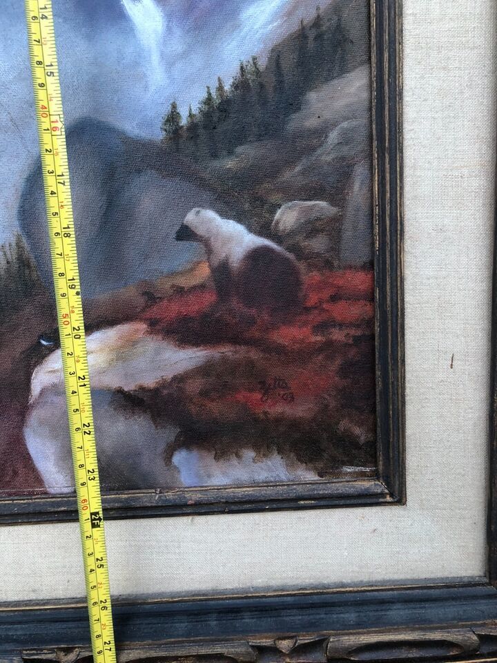 ZETTIE JONES Original MOUNTAIN BEAR OIL PAINTING MASTERFUL Canvas Gilt Frame