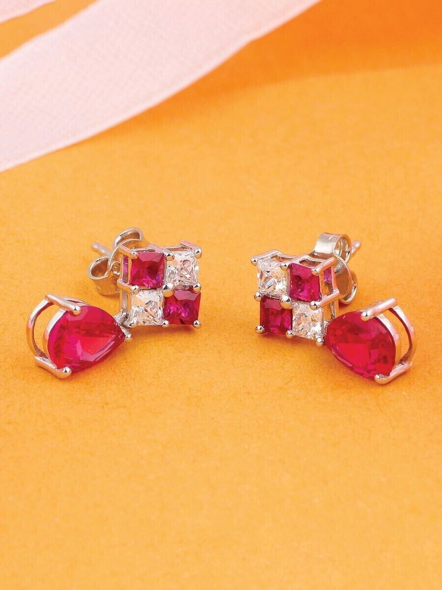 2Ct Lab Created Pear Cut Pink Ruby Drop Dangle Earrings 14k White Gold Plated