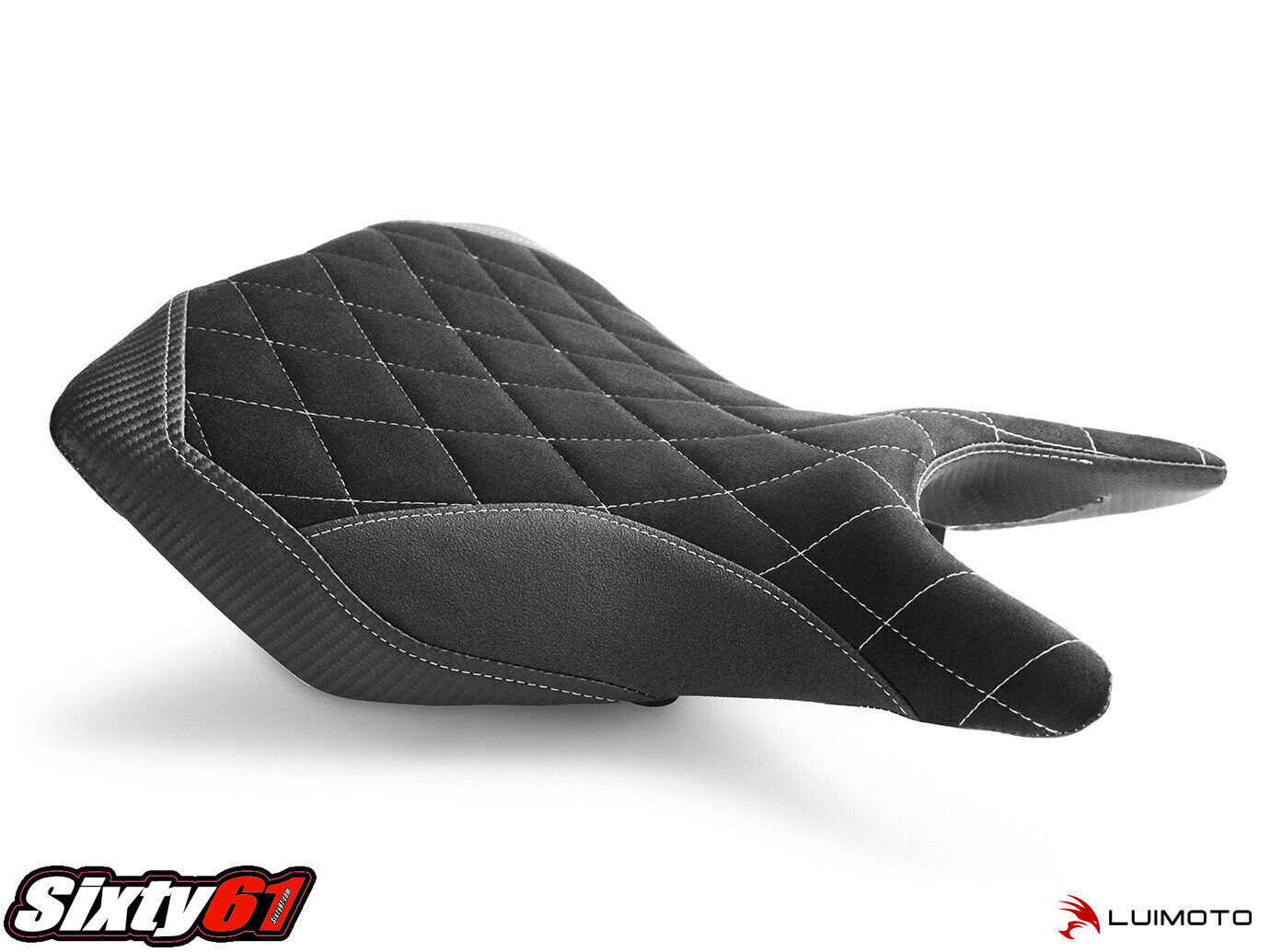 Introducing the Diamond Edition Seat Cover for your Yamaha R3! Featuring a luxurious synthetic suede seating surface quilted with our famous diamond stitching. Tec-grip side panels add grip while carving corners and carbon fiber look panels add style to your ride. The entire seat cover is contrast stitched for a totally custom look. Stand out with the finishing touch of Luimoto!