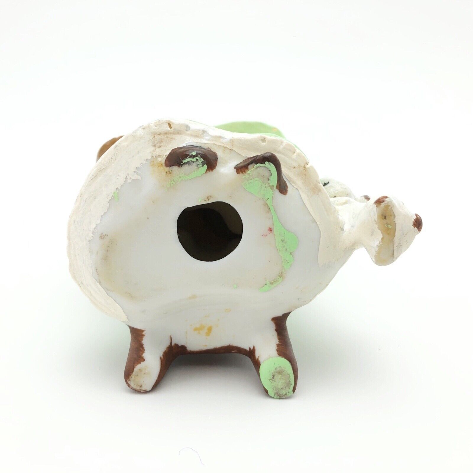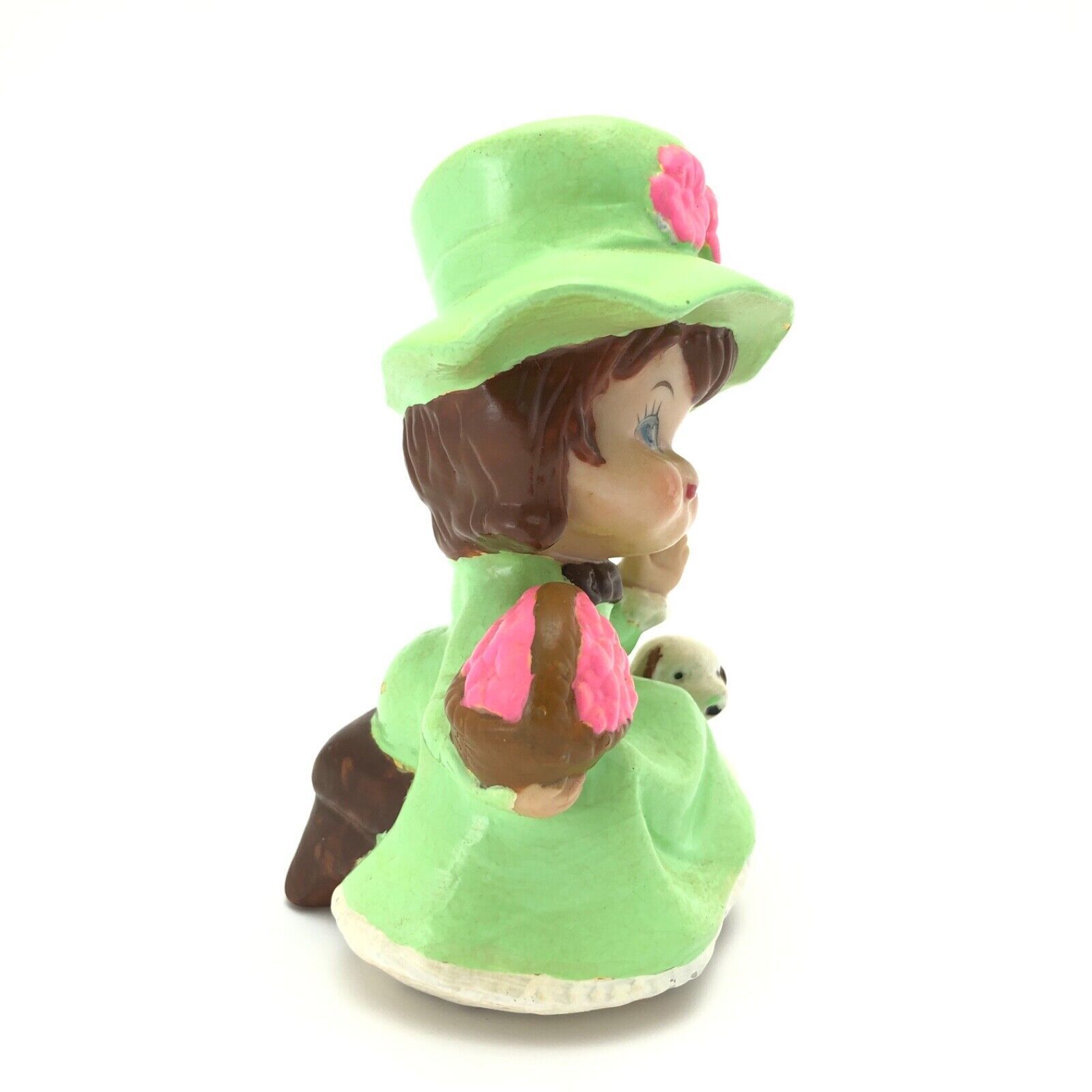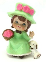 Vintage Figurine Hand Painted Ceramic Girl in Dress with Dog Green and Pink