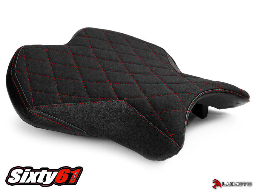Introducing the Diamond Edition Seat Cover for your Yamaha R6! Featuring a luxurious synthetic suede seating surface quilted with our famous diamond stitching. Tec-grip side panels add grip while carving corners and carbon fiber look panels add style to your ride. The entire seat cover is contrast stitched for a totally custom look. Stand out with the finishing touch of Luimoto!
