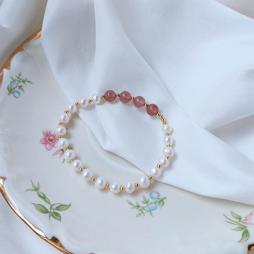 Bright Eyes Natural Freshwater Pearl Strawberry Crystal Wild Elastic Line Adjust