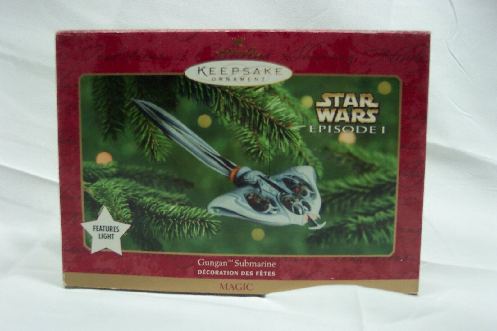 This is a Vintage Hallmark Keepsake Magic Star Wars Episode 1 GUNGAN SUBMARINE Ship LIGHT UP CHRISTMAS HOLIDAY ORNAMENT. It is BRAND NEW. Made by HALLMARK in 2000. It is about 7 inches long. Combine auctions to save on shipping. Please contact me if you need to make other payment arrangements. ELAG