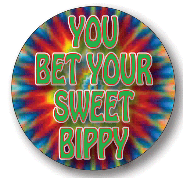 This listing is for QUANTITY 1- 3" PIN BACK BUTTONS. THIS BUTTON READS: YOU BET YOUR SWEET BIPPY FROM LAUGH IN SKITS. THESE BUTTONS ARE GREAT FOR A HALLOWEEN COSTUME TO GIVE TO PARTY GUESTS. YOUR BUTTONS WILL SHIP WITHIN 24 HOURS FREE FIRST CLASS MAIL, US ONLY. No hidden charges or set up fees. We also carry a premium econo BLANK name badge line for businesses with high turn over employees (these badges can be personalized with crystal clear labels.)