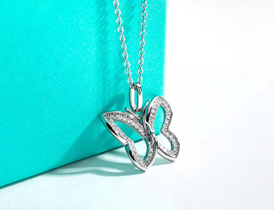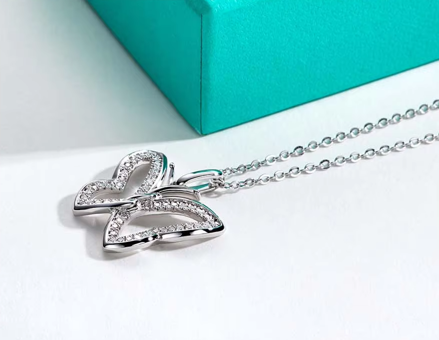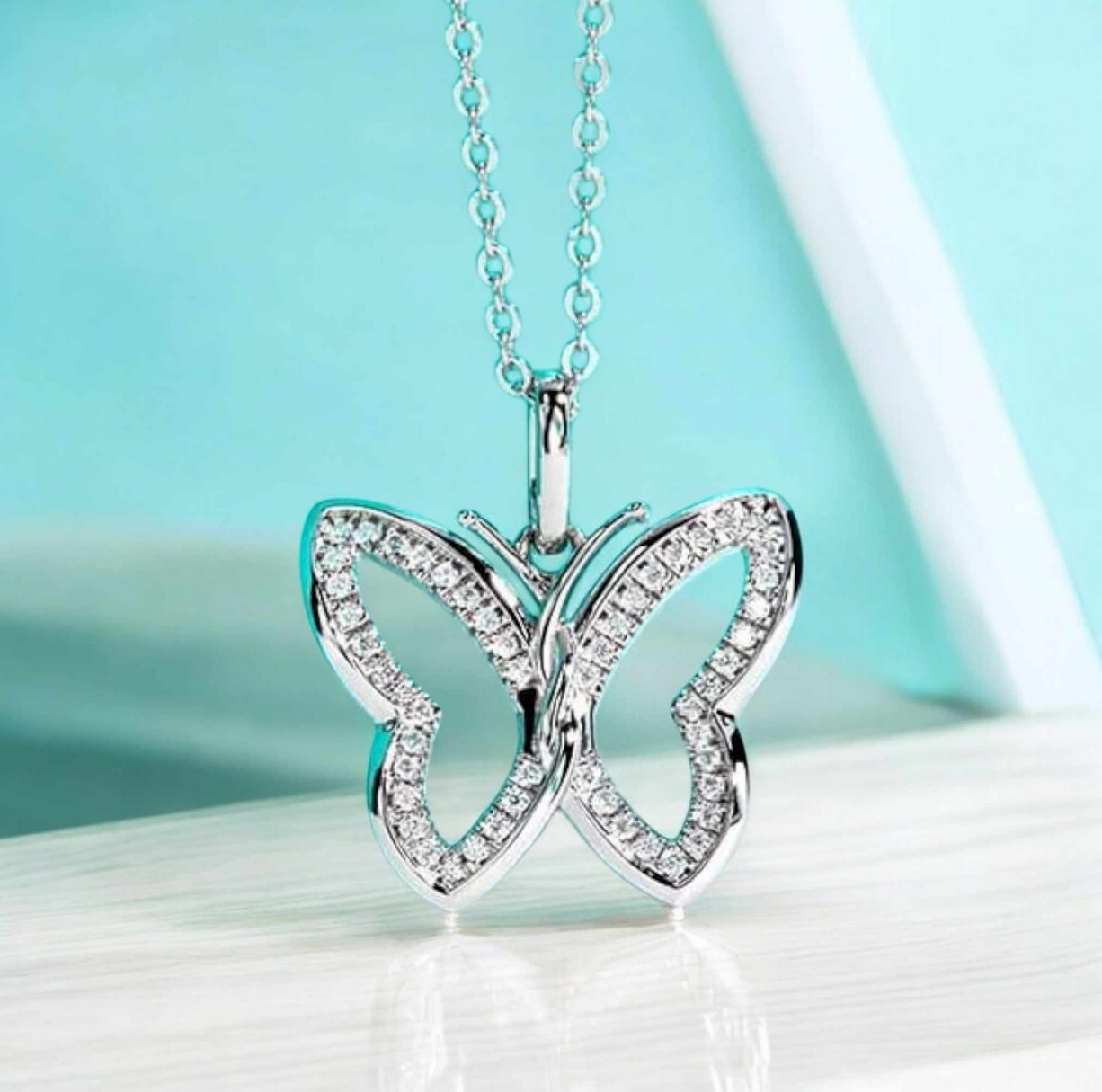 Exquisite 18K 925 Sterling Silver Hollow Moissanite Butterfly Pendant Necklace
