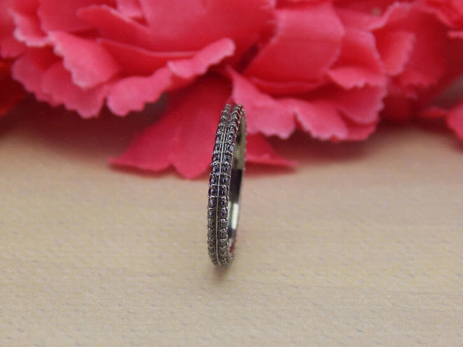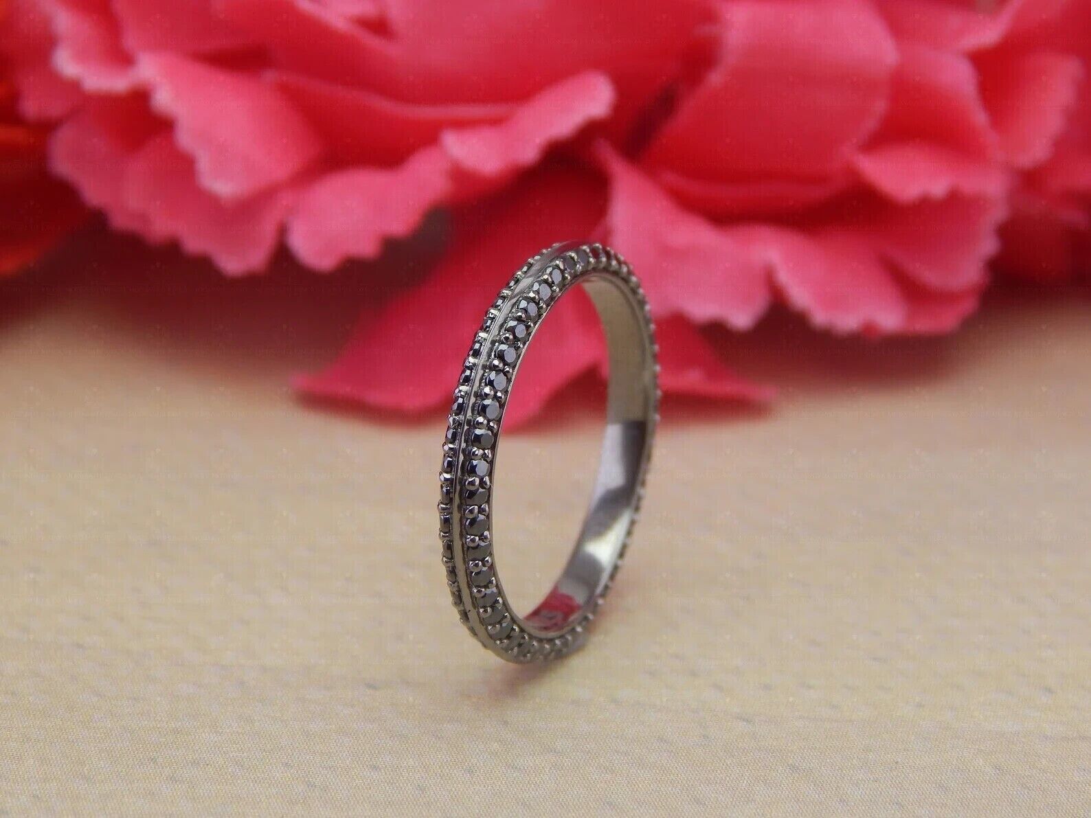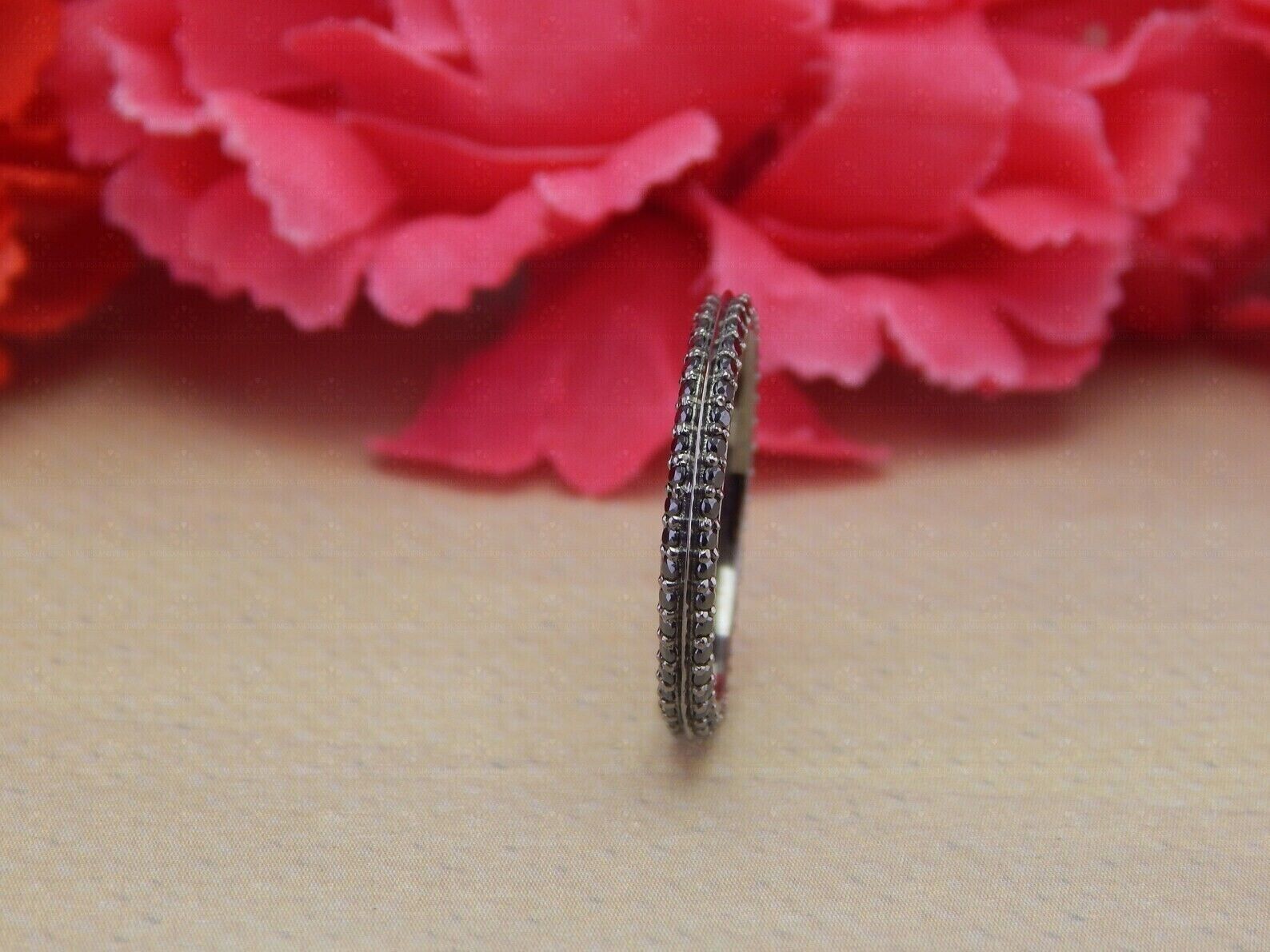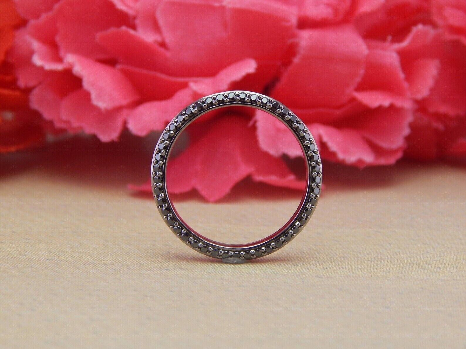 1Ct Round Cut Black Diamond Lab Created Engagement Band 14K Black Gold Plated