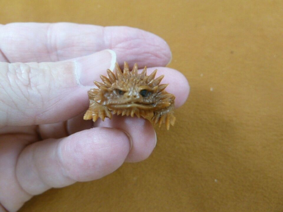 tb-liz-52 Horned Lizard Tagua NUT palm figurine Bali detailed horny toad