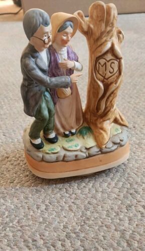 Vintage Ceramic Old Couple At Tree Lovers Plays Rotates