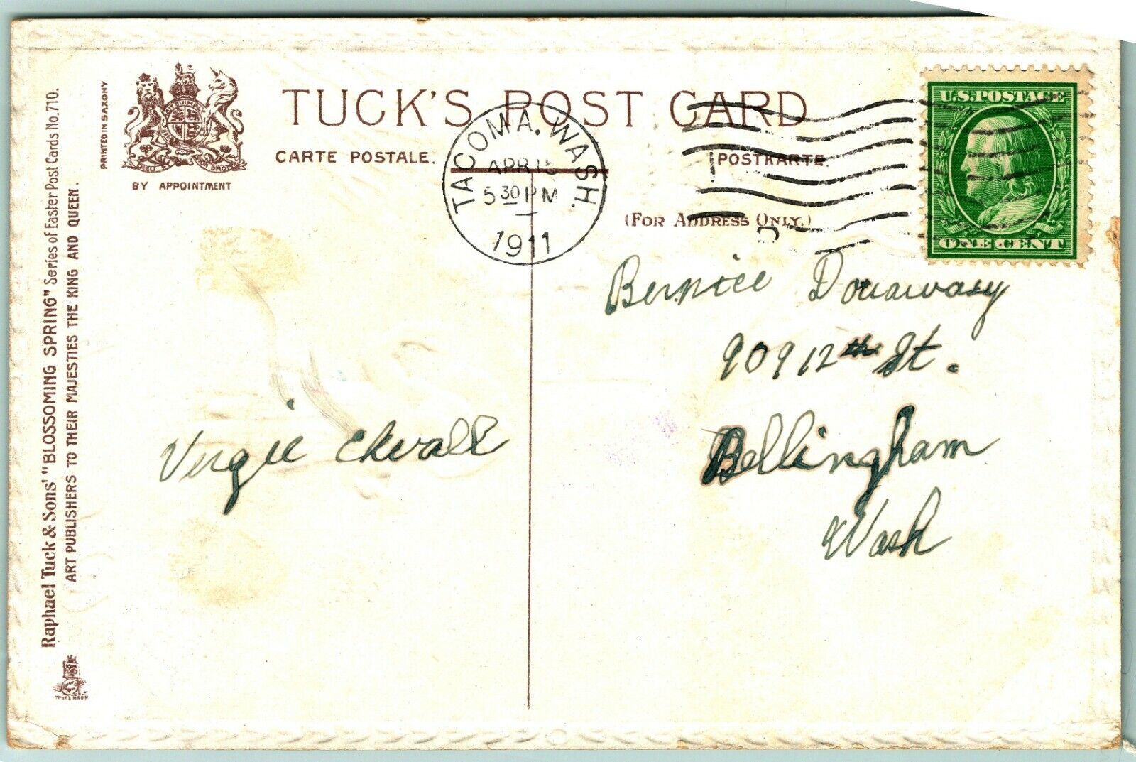 Raphael Tuck Happy Easter Little Girl Holding Flowers Embossed DB Postcard I10