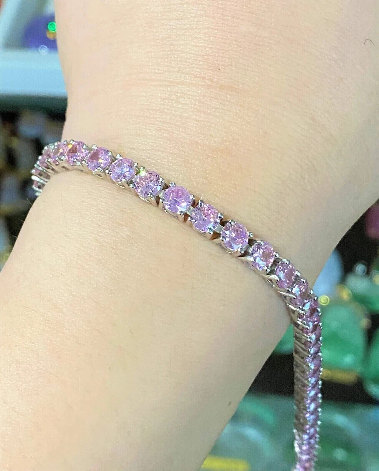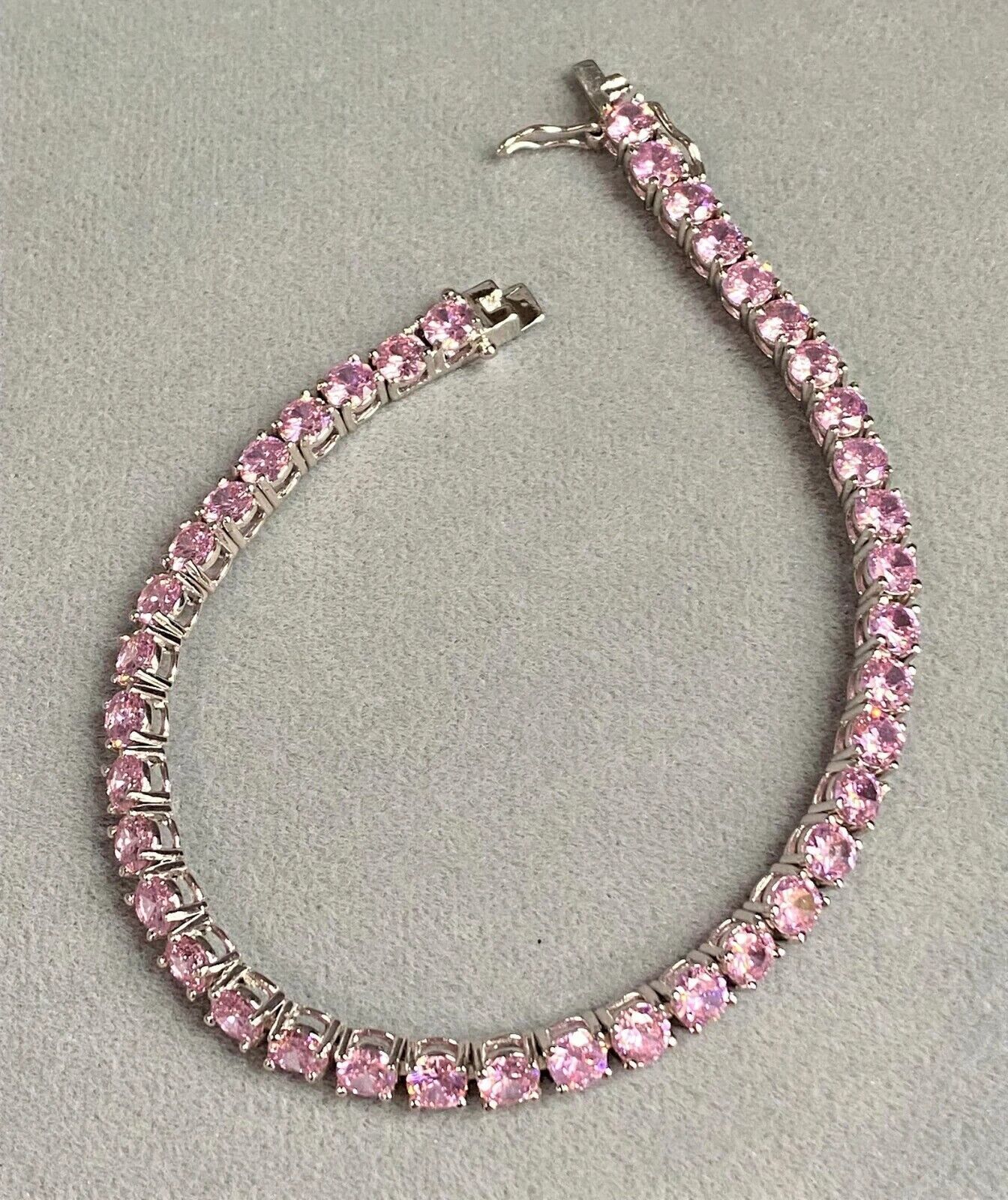 10Ct Round Cut Pink Sapphire Tennis Lab and 50 similar items