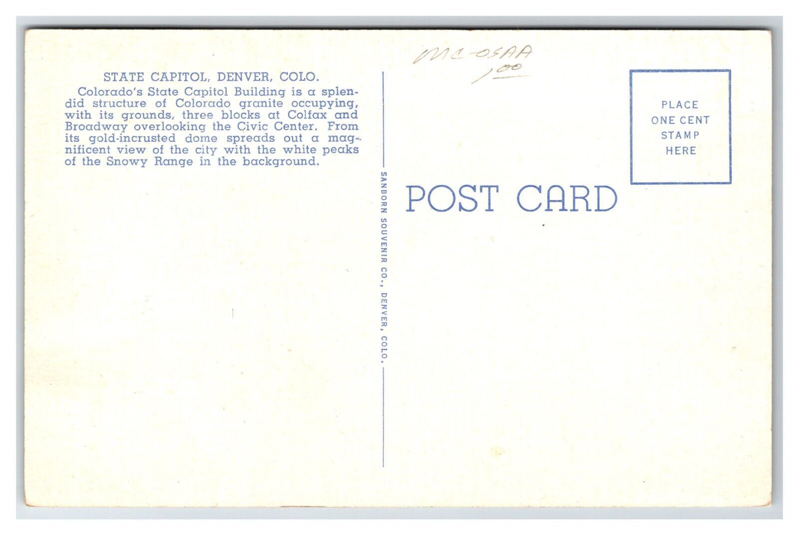 State Capitol Building Denver Colorado CO UNP Linen Postcard XA7