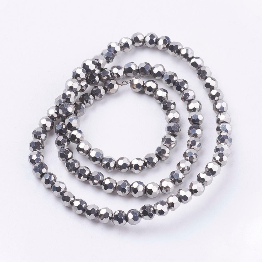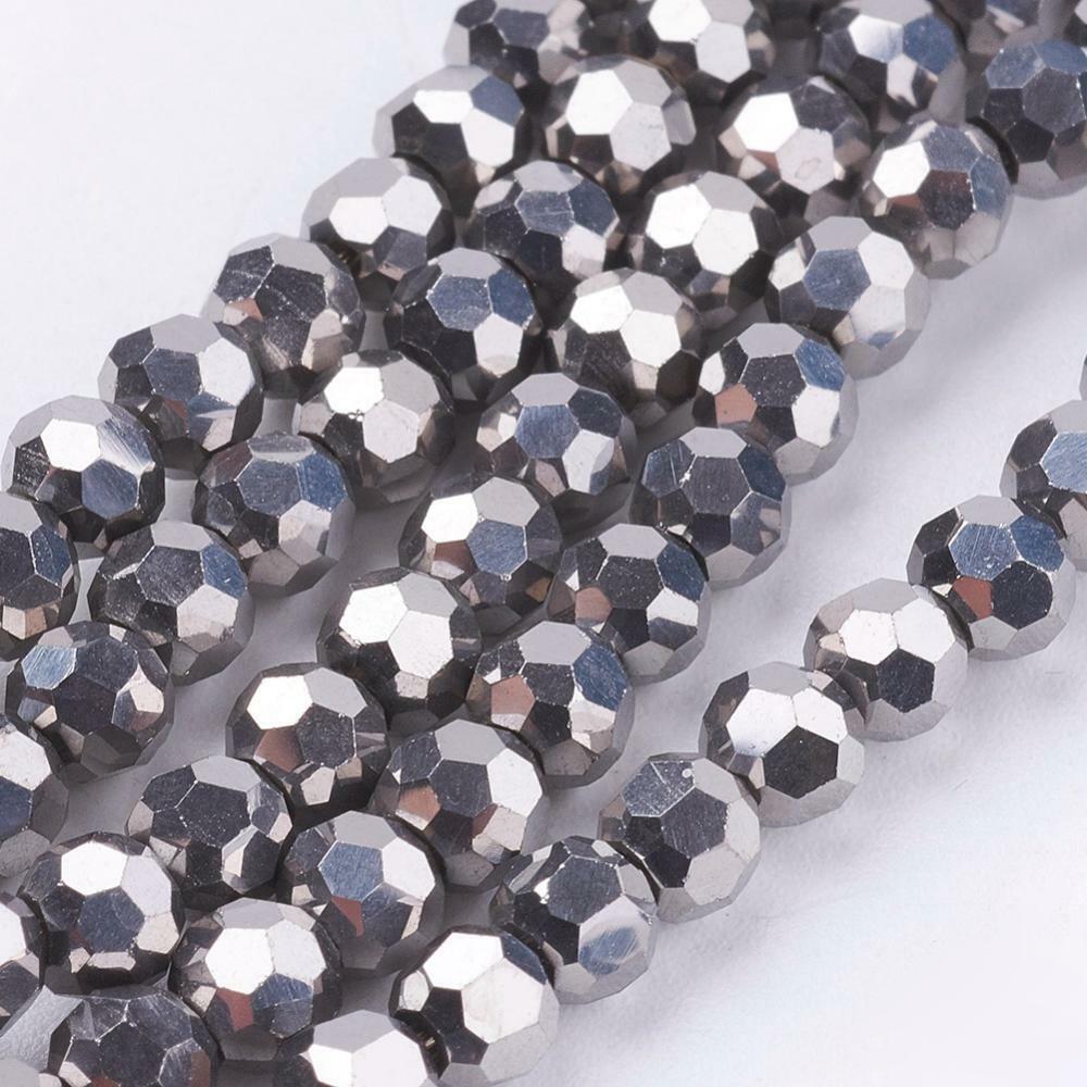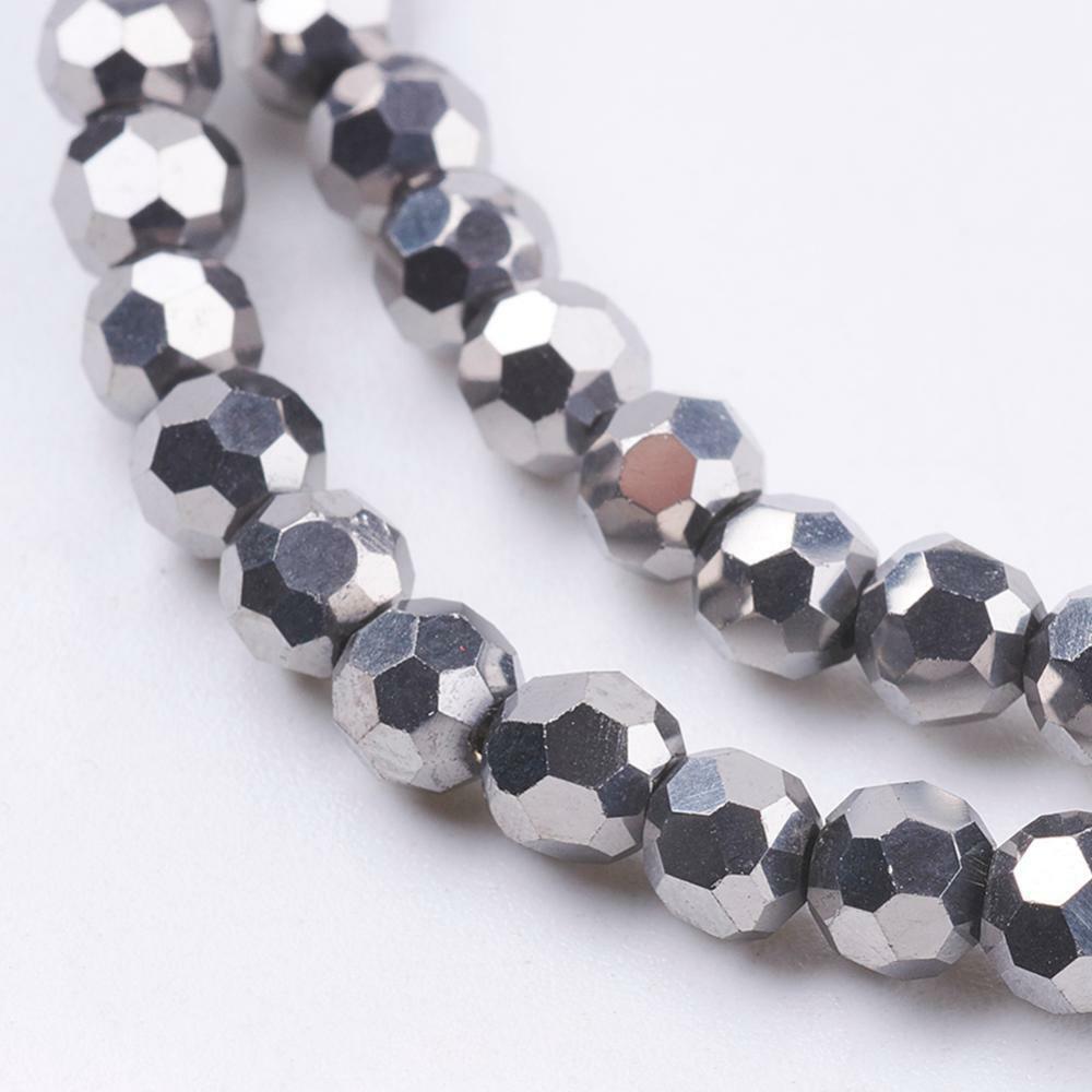 Electroplate Glass Bead Strands, Faceted, Round, Silver Plated, 4mm; Hole: 0.5mm, about 100pcs/strand; 14.2"