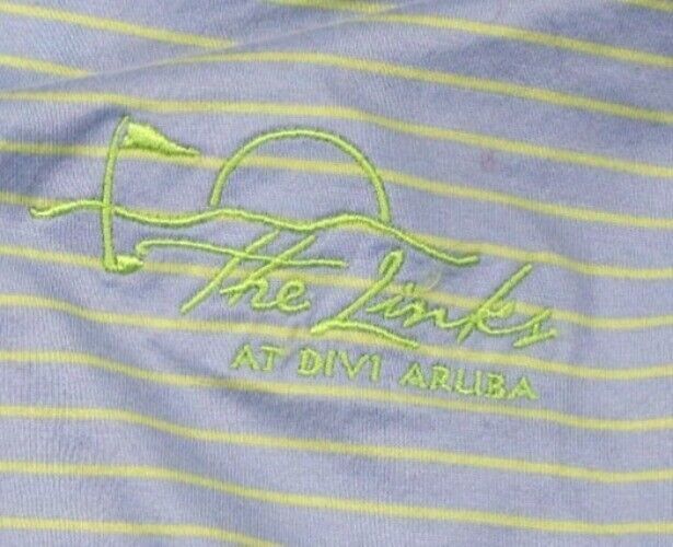 Fairway & Greene Light Blue Striped Polo Golf Shirt L/G 100% Cotton Embroidered