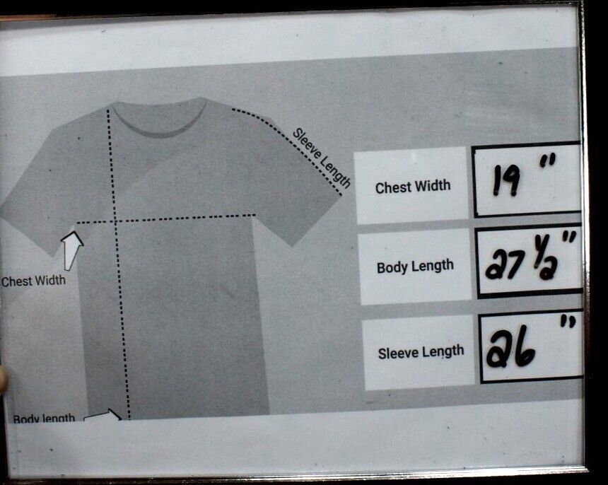 Chest width = 19 inches, body length = 27.5 inches, sleeve length = 26 inches