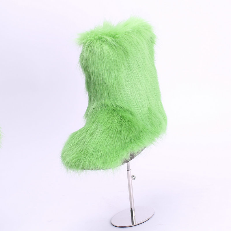 Colorful Cotton Candy Snow Boots Imitation Fox Hair Wool And Cotton Boot