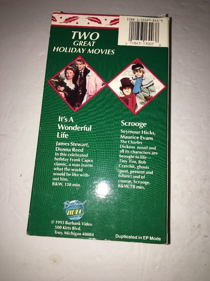 VHS Box Set Two Great Holiday Movies:Its a Wonderful Life Scrooge James Stewart