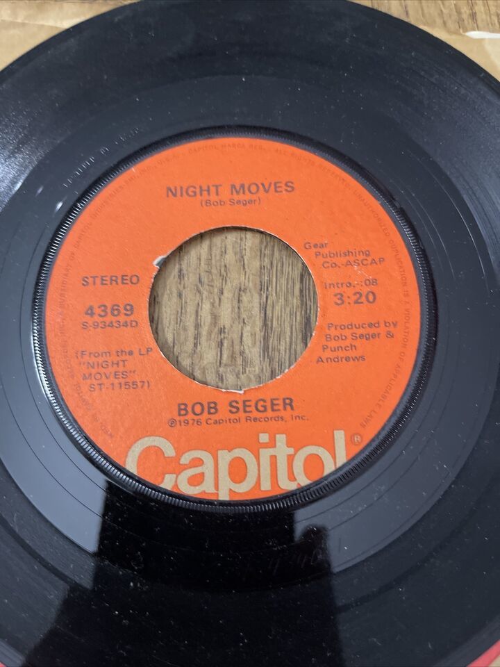 Get ready to rock and roll with this classic Bob Seger 45 Record! Celebrate the timeless sound of Night Moves with this high-quality vinyl record, perfect for any music lover or collector. This vintage piece is sure to add some retro flair to your collection, and is a must-have for any fan of classic rock.