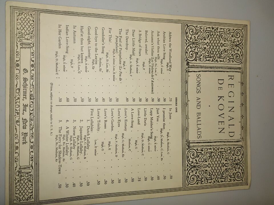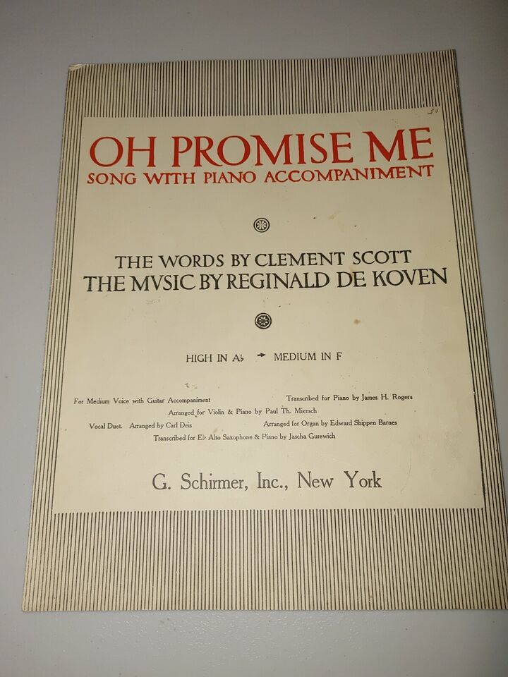 OH PROMISE ME by Clement Scott/Reginald De Koven, 1917 Antique Sheet Music