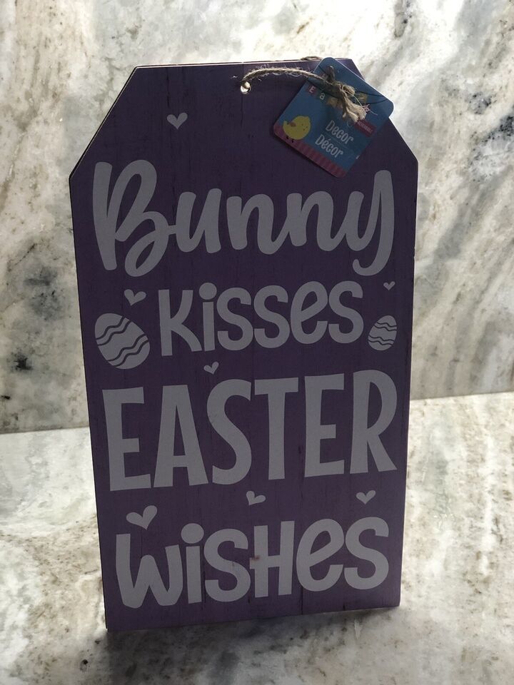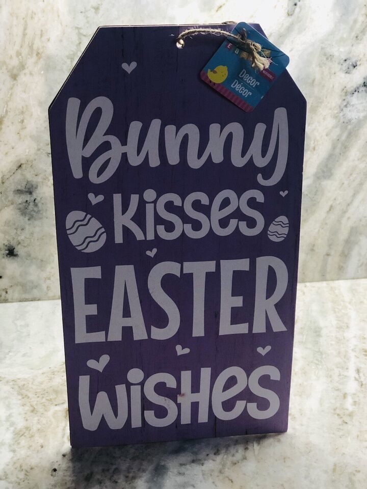 Bunny Kisses Easter Wishes Easter Wood Hanging Decor Sign: 7x14”. ShipN24Hours
