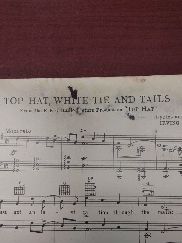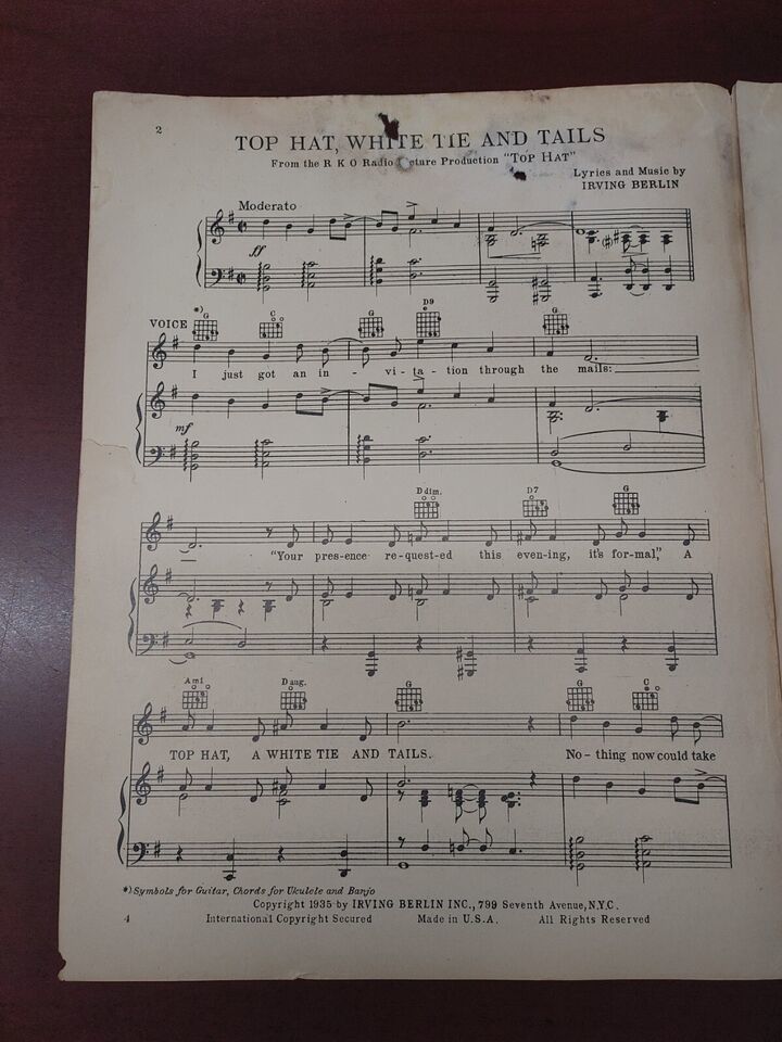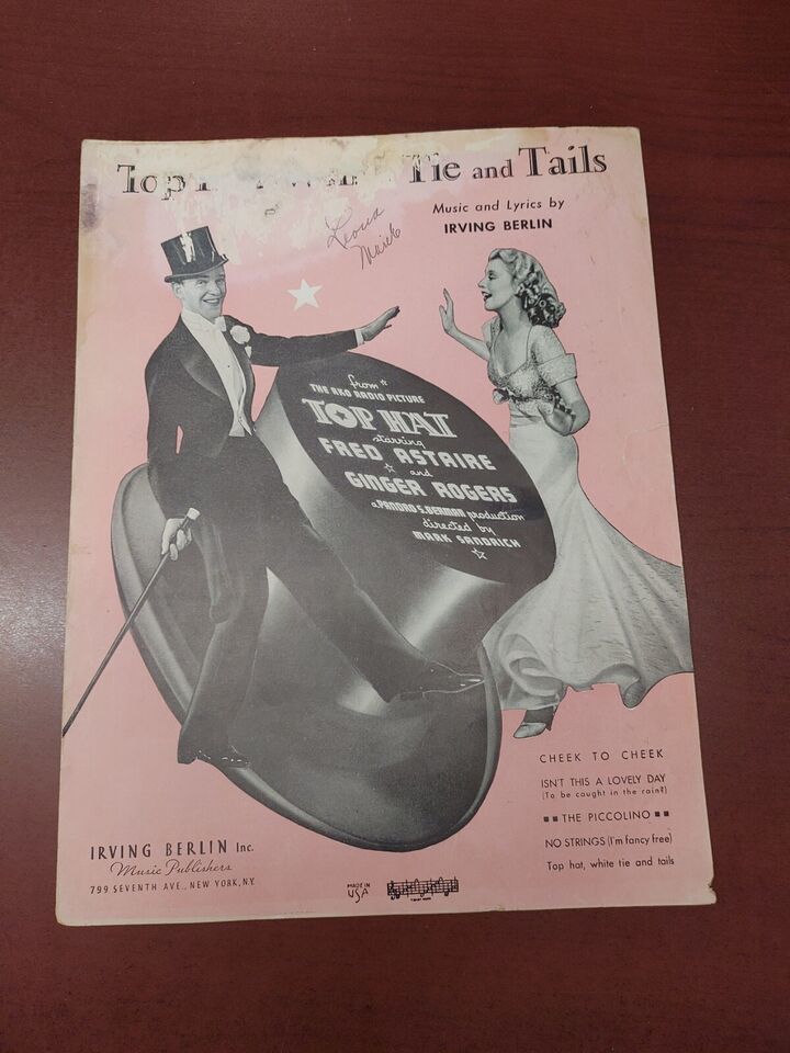 TOP HAT 1935 White Tie and Tails FRED ASTAIRE/GINGER ROGERS Movie Sheet Music.