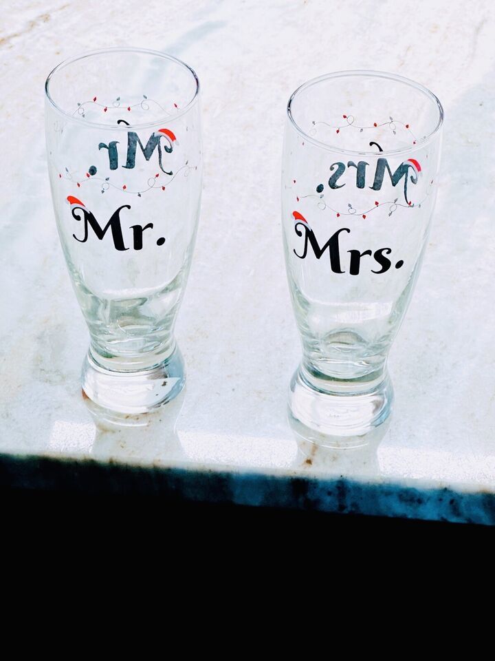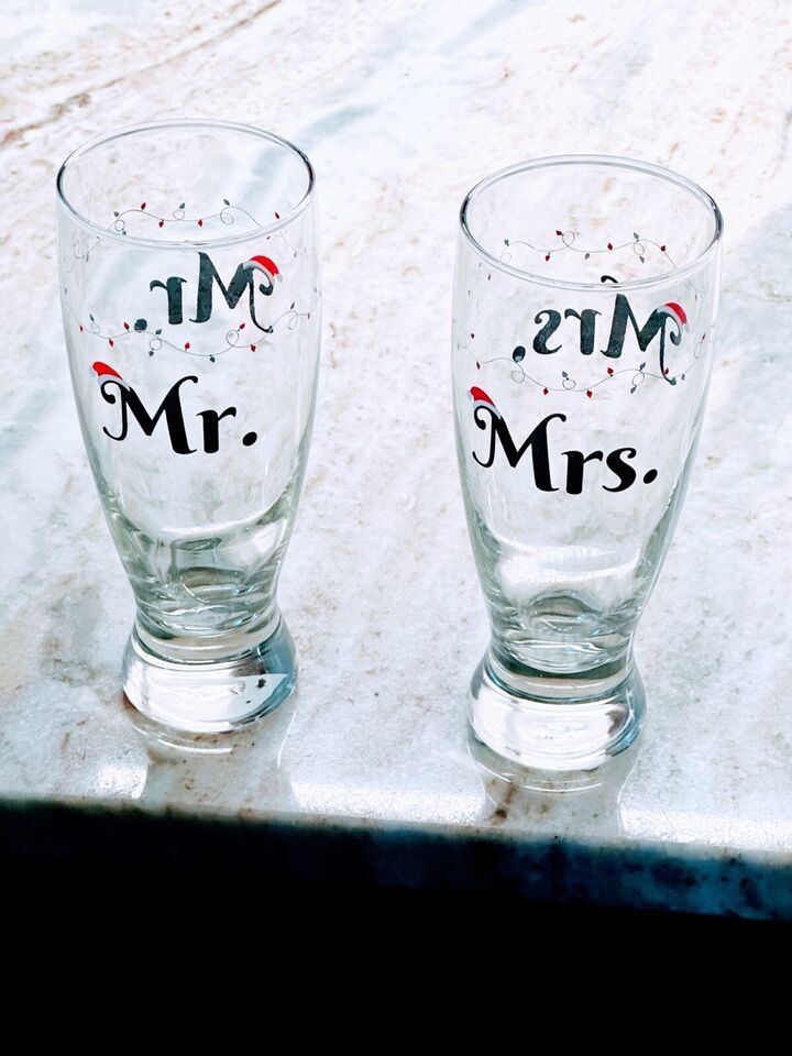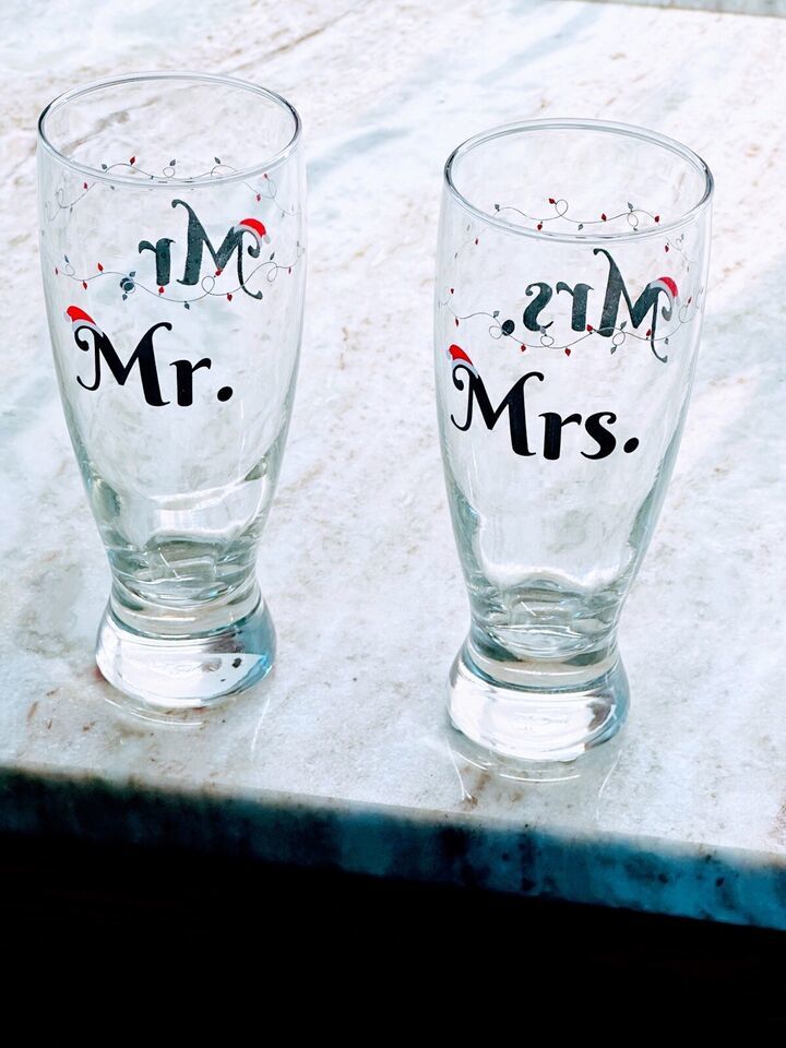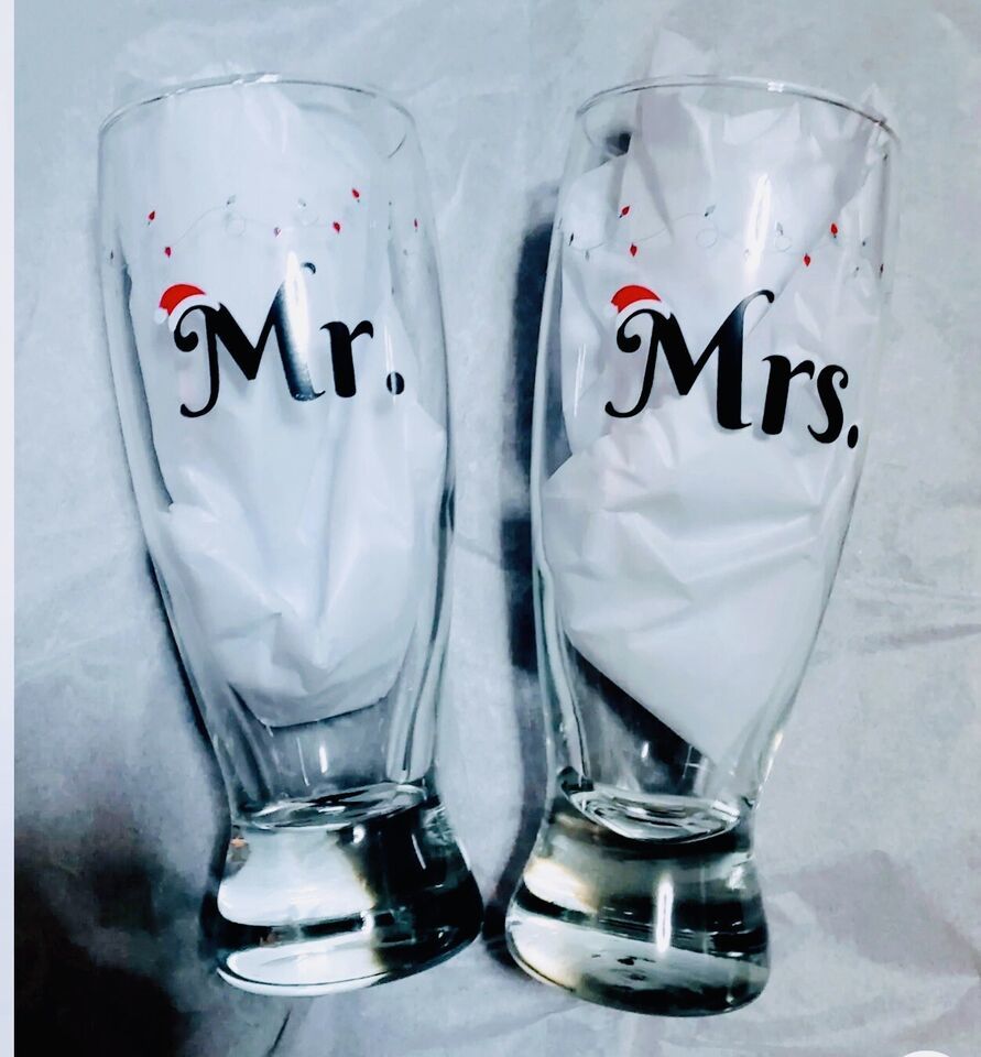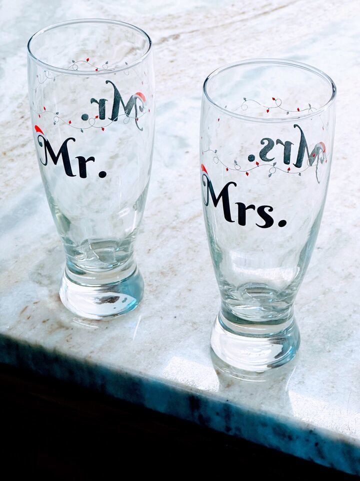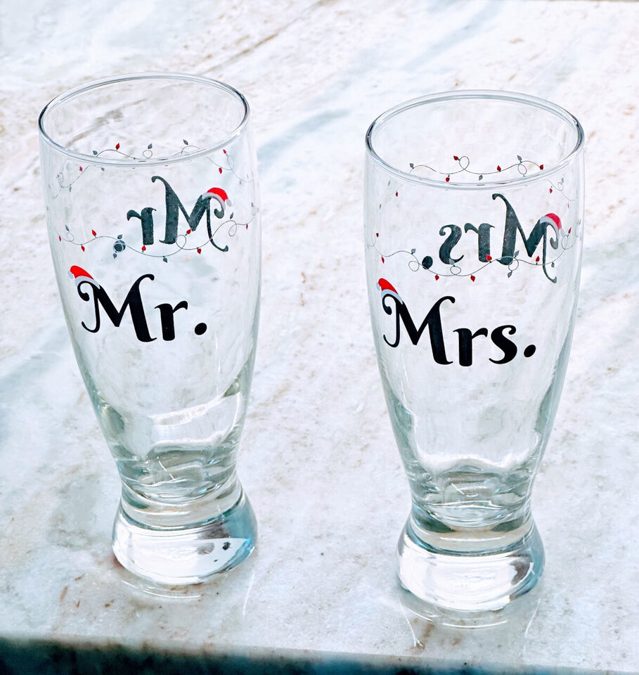 COUPLES CHRISTMAS GIFT MR. AND MRS. GLASSES PILSNER WEDDING ANNIVERSARY-14.5oz