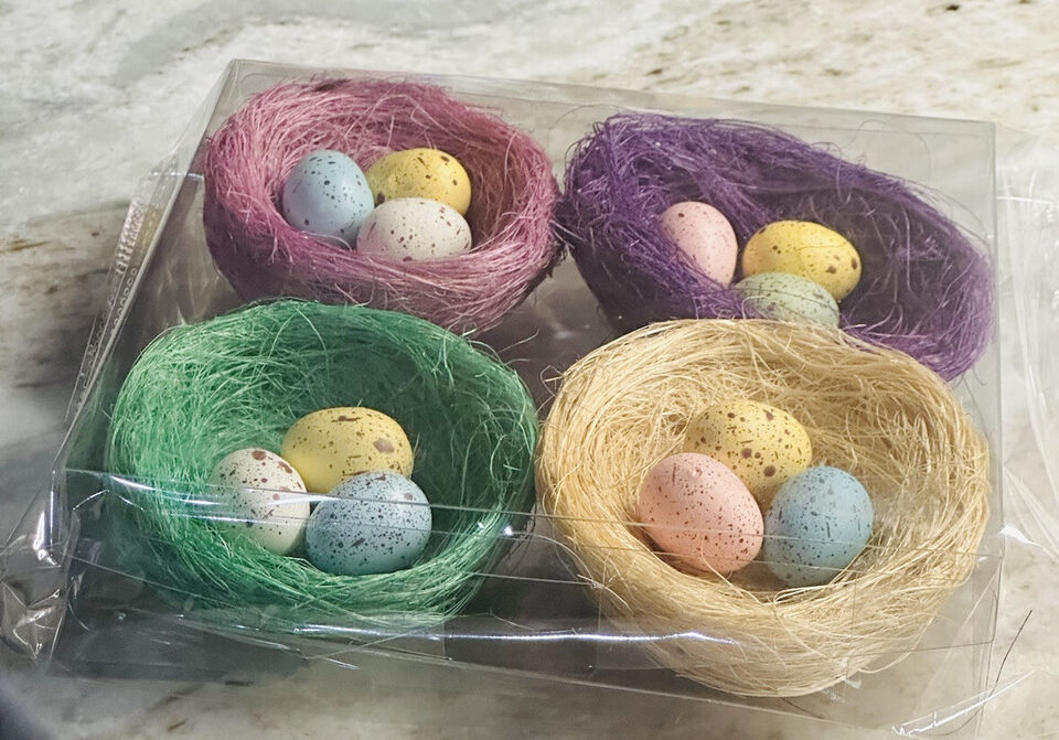 Add a touch of elegance to your Easter decorations with this Hobby Lobby 4-pack Easter bird nest decoration. The set includes speckled eggs and a tier tray tabletop to create a charming display. The figurines are made by the prestigious brand Nest and are perfect for Easter occasions.
