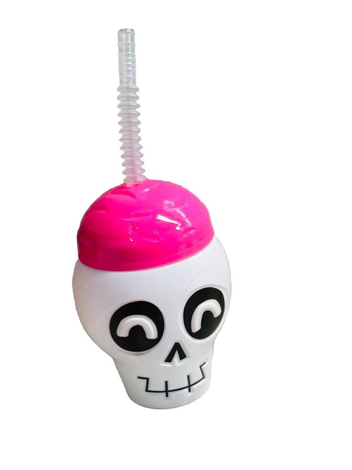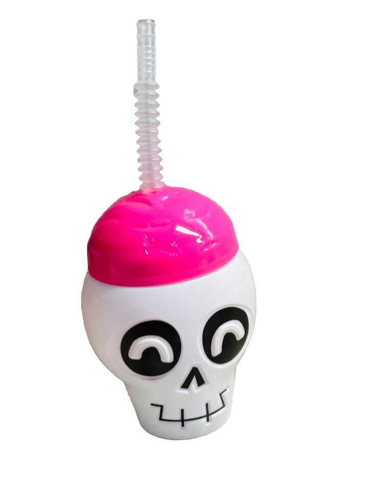 Plastic Halloween Character Cup with Flexible Straw Tumbler with Lid Skull Face