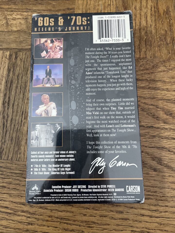 Experience the iconic moments of Johnny Carson's time on the Tonight Show with this VHS tape. Laugh along with the comedy legend in this collection of his favorite moments from the 60s and 70s.