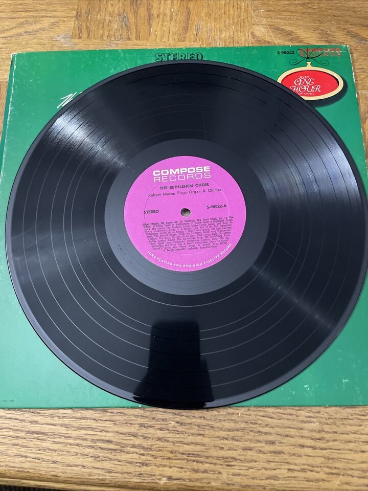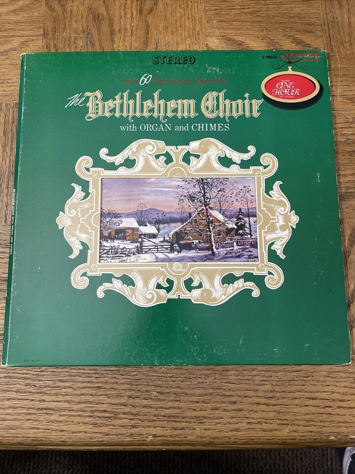 Get into the holiday spirit with this vinyl record album featuring the Bethlehem Choir singing 60 Christmas favorites. Perfect for any Christmas occasion, this record is sure to bring joy and cheer to your home. The beautiful melodies and harmonies of the choir will transport you to a winter wonderland.