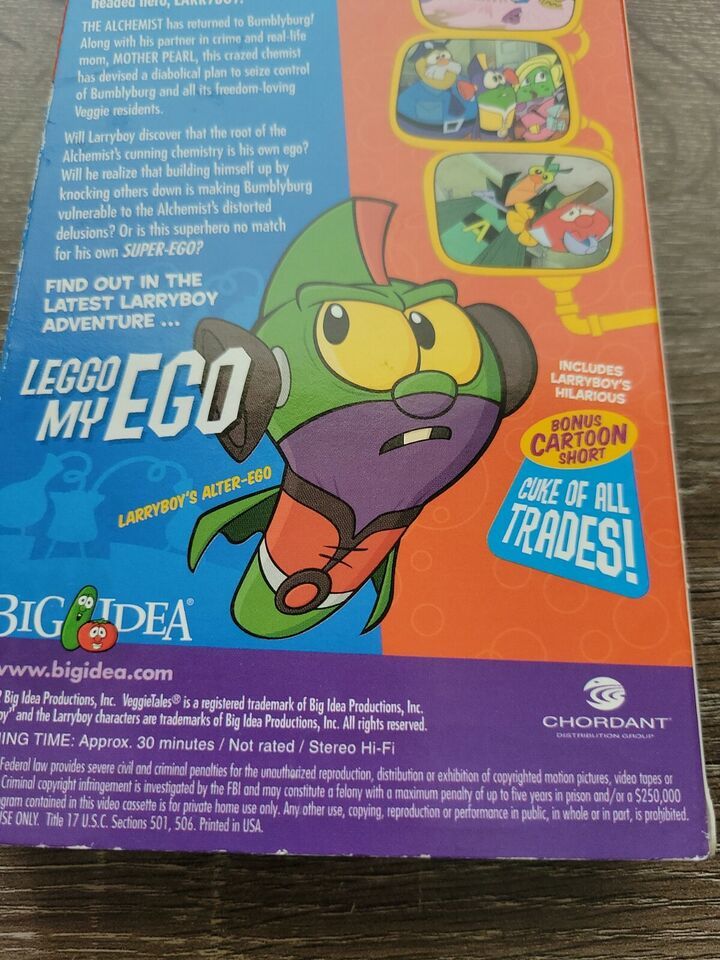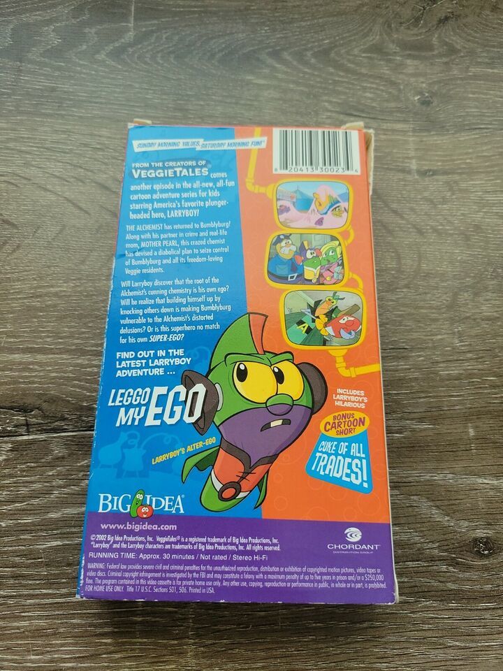 Larryboy The Cartoon Adventures Introducing The Alchemist in Leggo My Ego VHS. Condition is "Good". Shipped with USPS Media Mail within 24 hours.